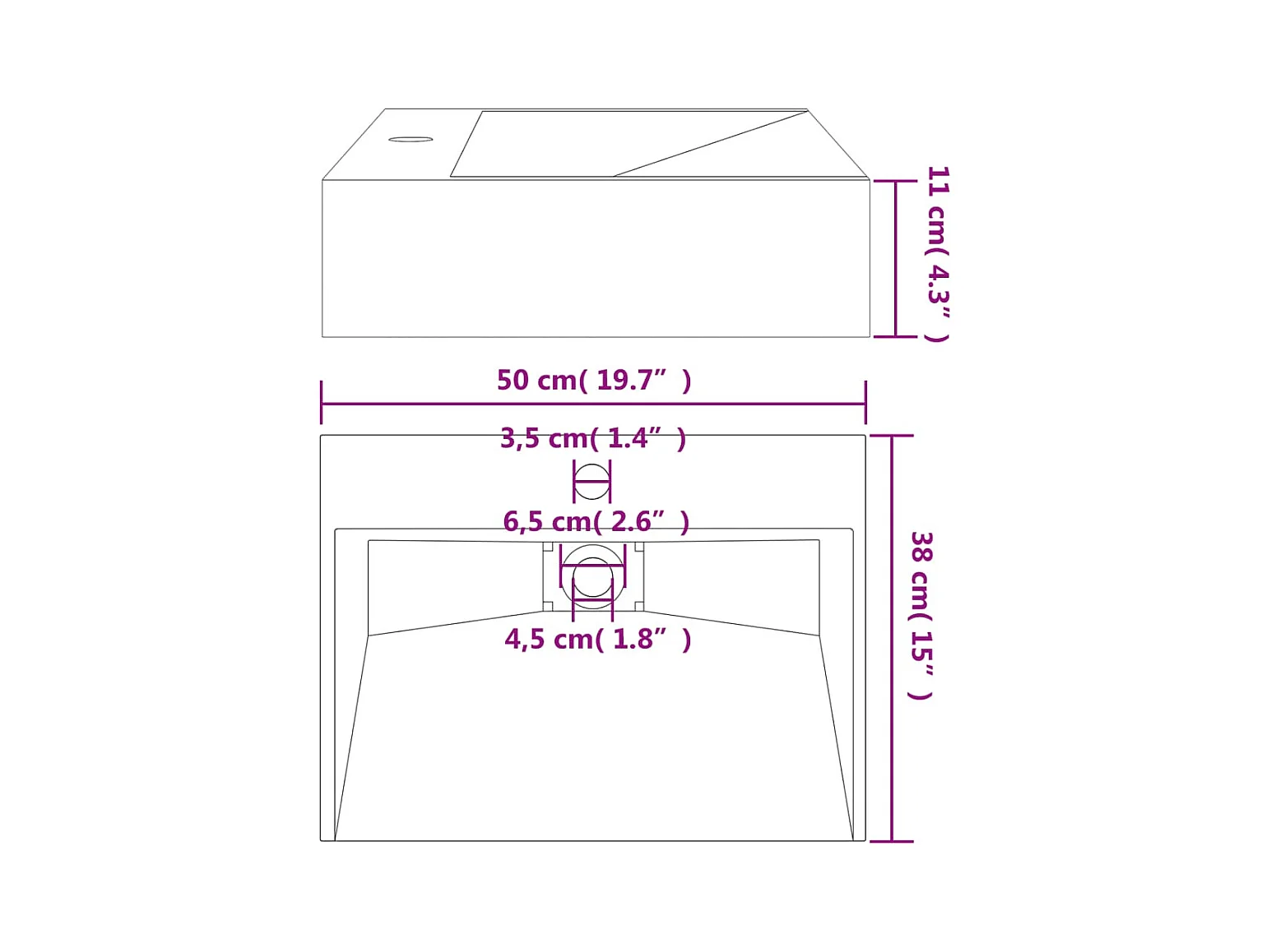 Lavabo 50x38x11 cm colata minerale/marmo nero opaco