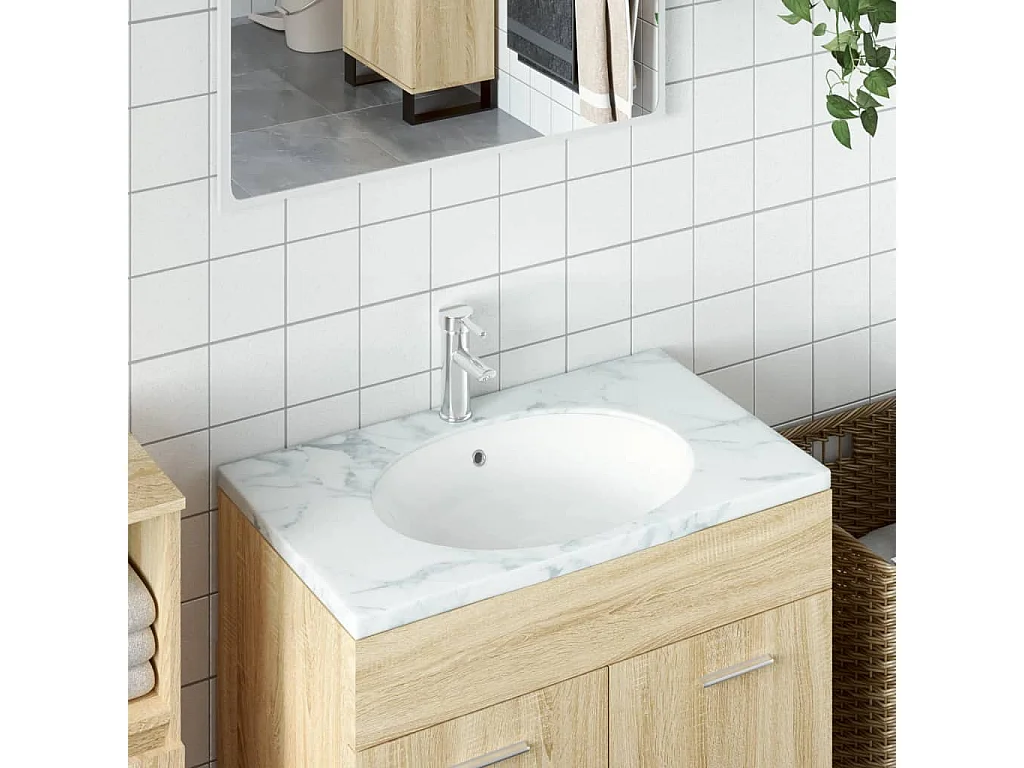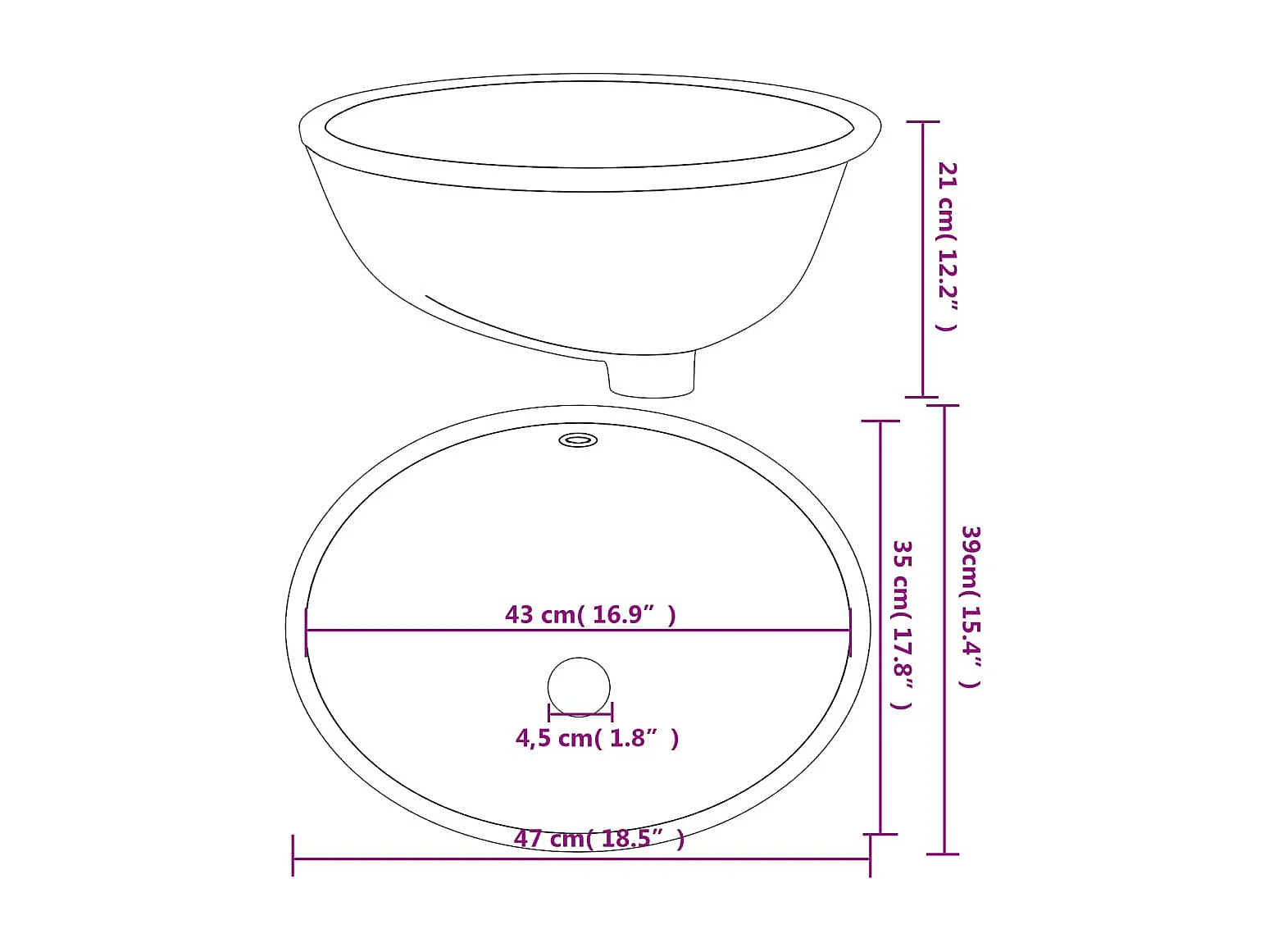 Lavabo bagno bianco 47x39x21 cm ovale in ceramica