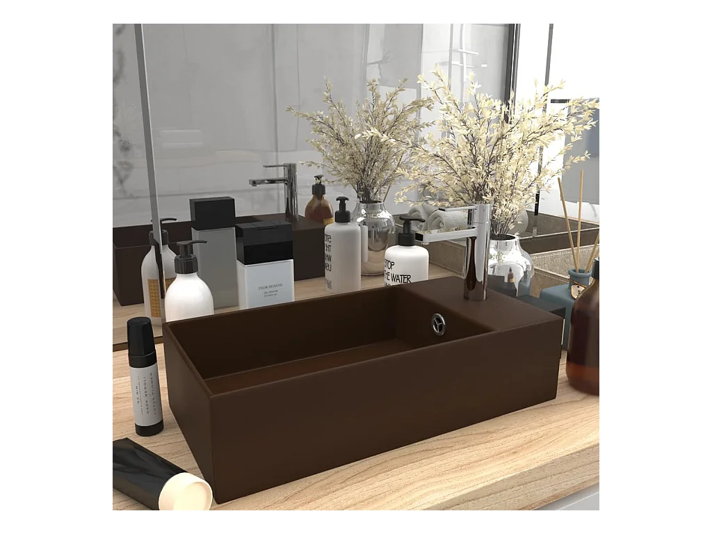 Lavabo Bagno con Troppo Pieno in Ceramica Marrone Scuro