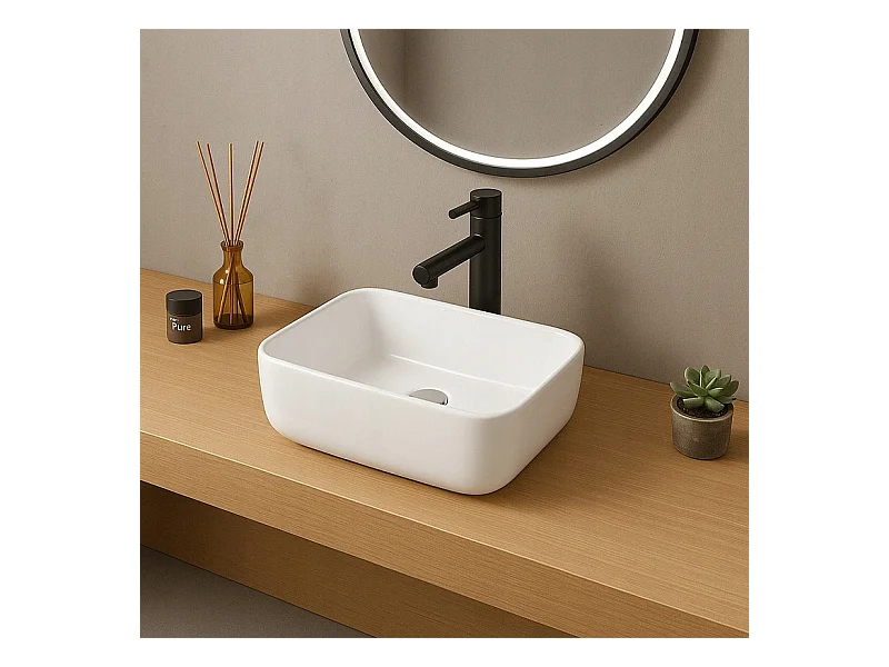 Lavabo da appoggio quadrato in ceramica bianca CLARA da 39 cm
