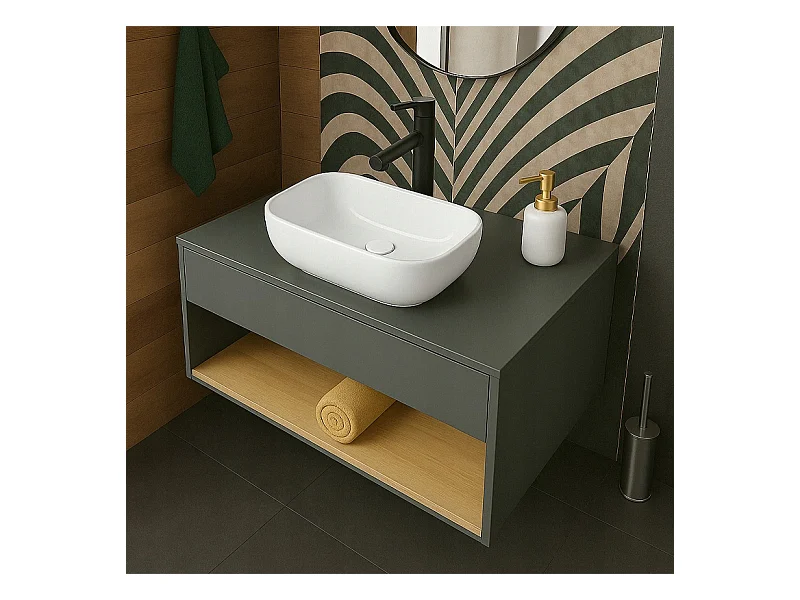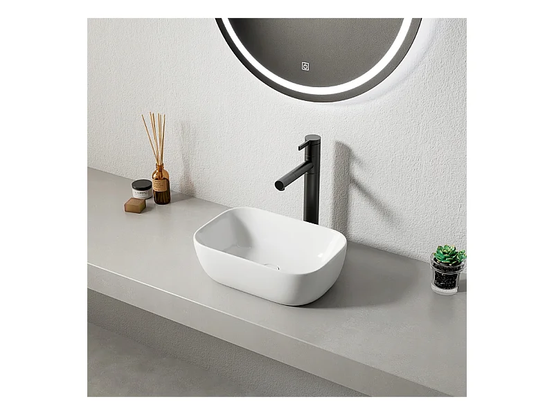 Lavabo da appoggio quadrato in ceramica bianca NAO da 40 cm