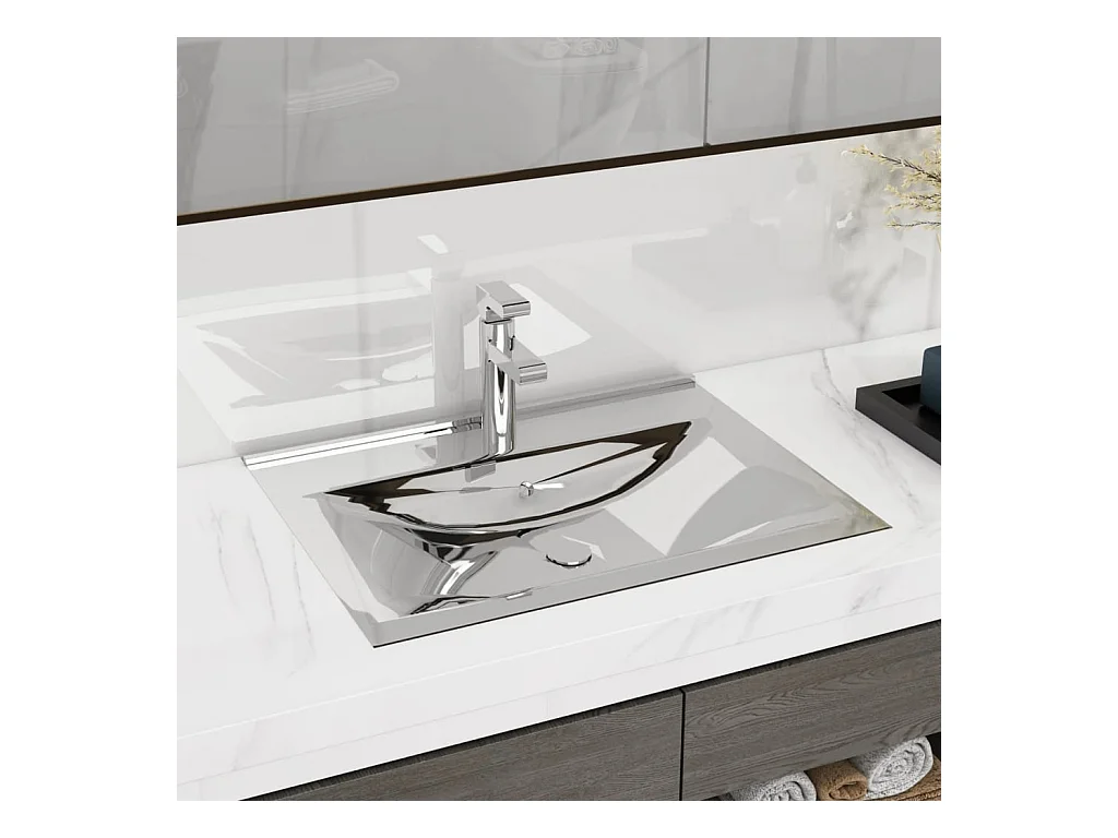 Lavabo con troppopieno 60x46x16 cm Ceramica Silver
