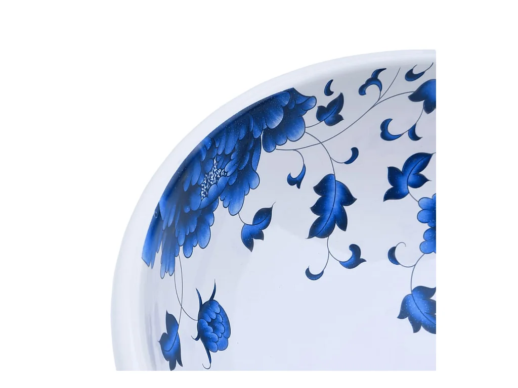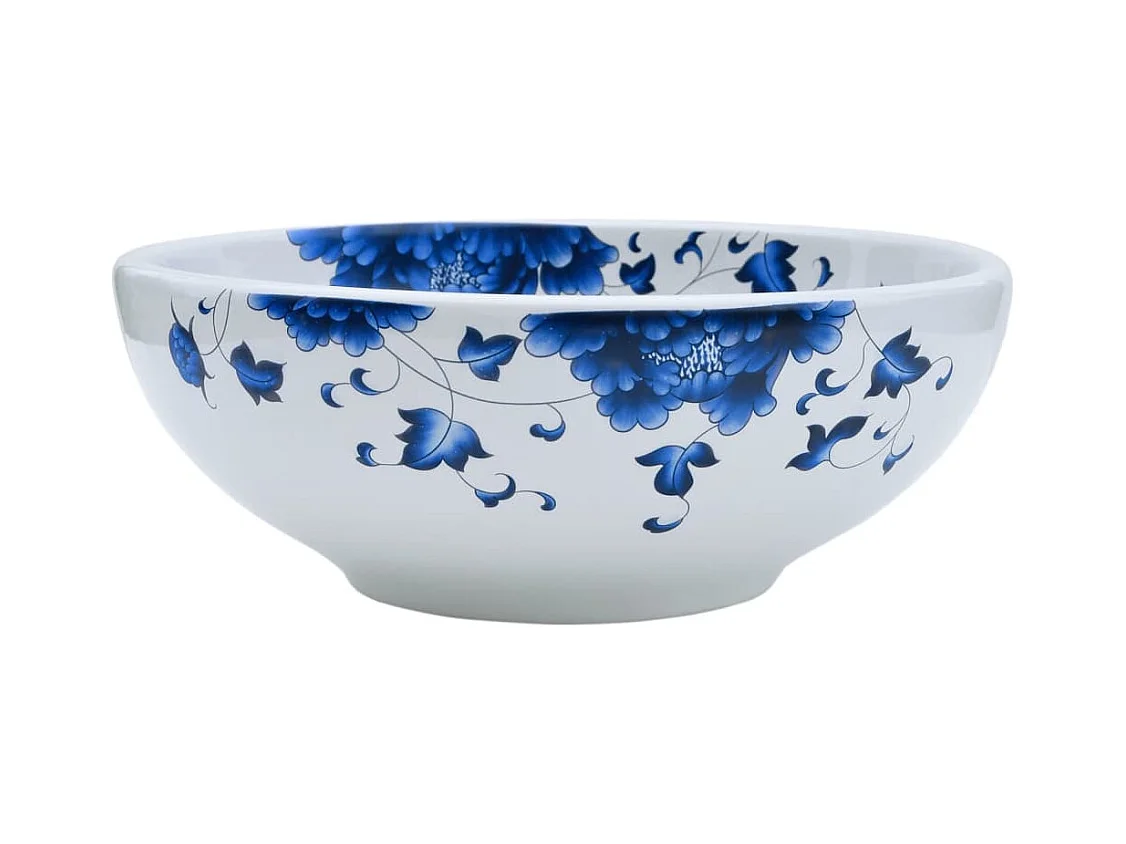 Lavabo da appoggio bianco e blu rotondo Φ41x14 cm in ceramica