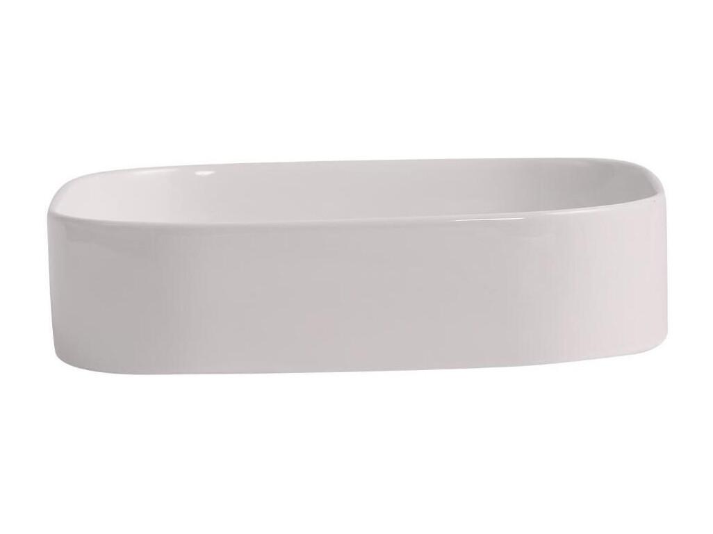 EMKE Lavabo a appoggio in ceramica 61×38×15 cm, lavabo da bagno rettangolare, Lavabo design bianco lucido