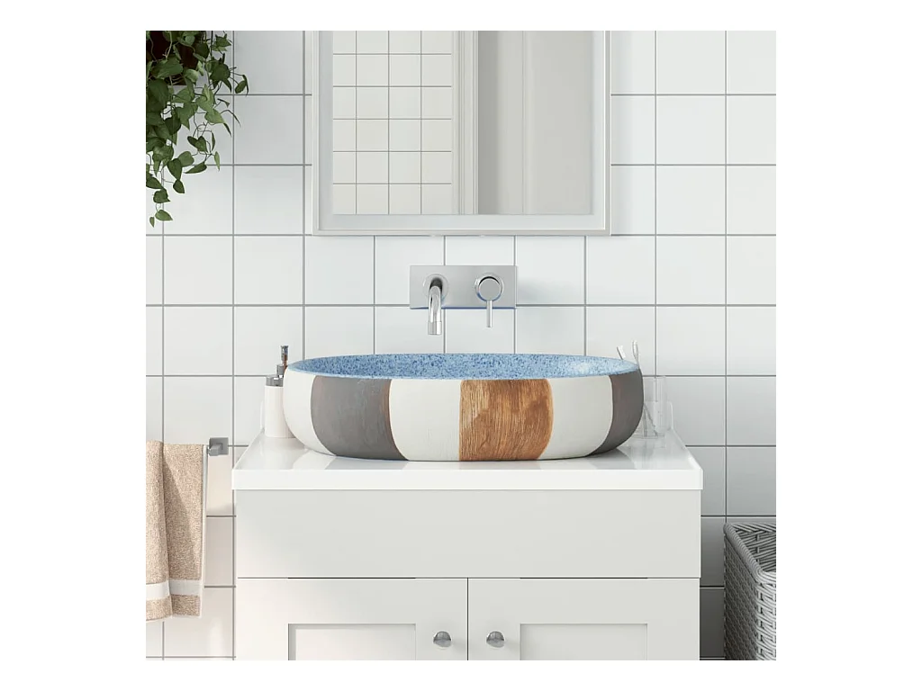 Lavabo da appoggio ovale sabbia e blu 59x40x14 cm in ceramica