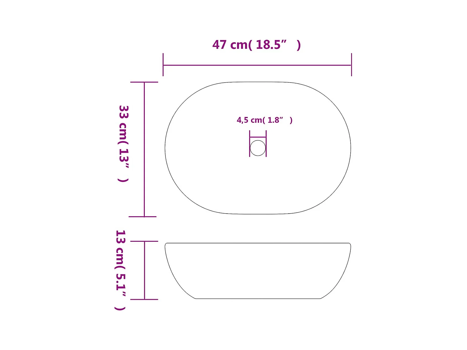 Lavabo da appoggio ovale nero e blu 47x33x13 cm in ceramica