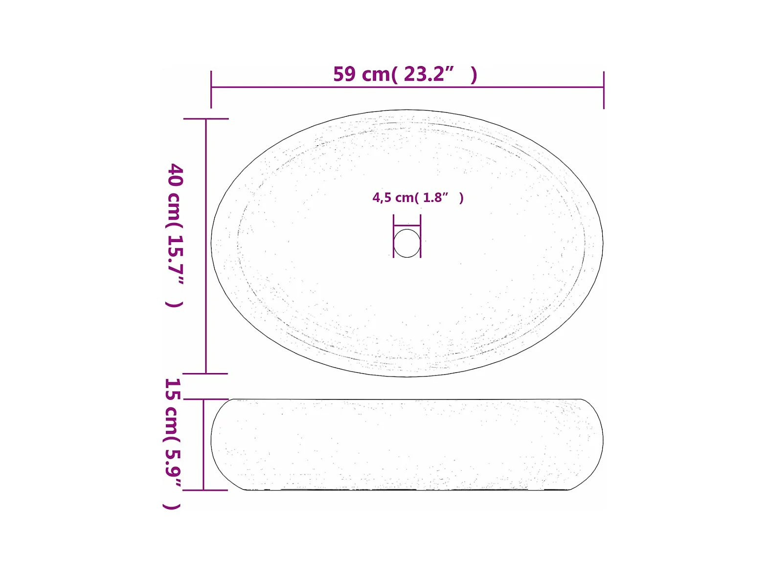 Lavabo da appoggio ovale multicolore in ceramica 59x40x15 cm