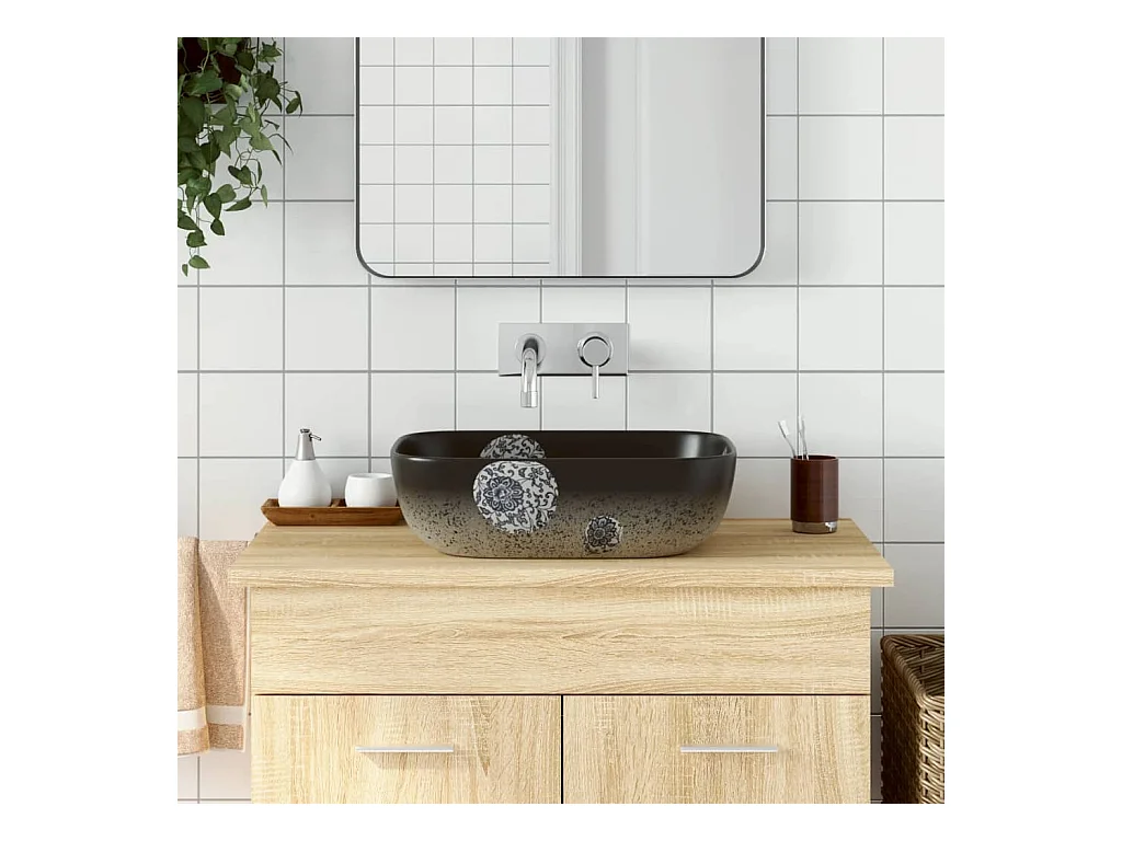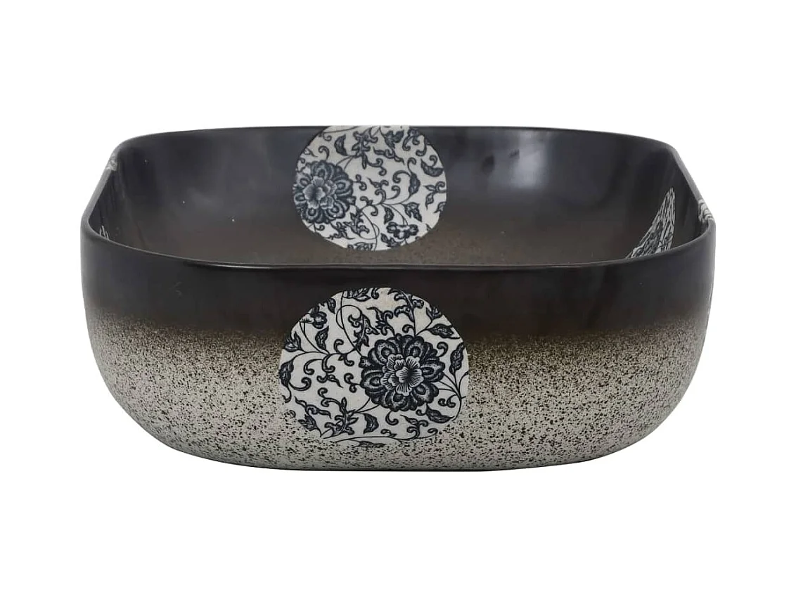 Lavabo da appoggio rettangolare in ceramica nera e marrone