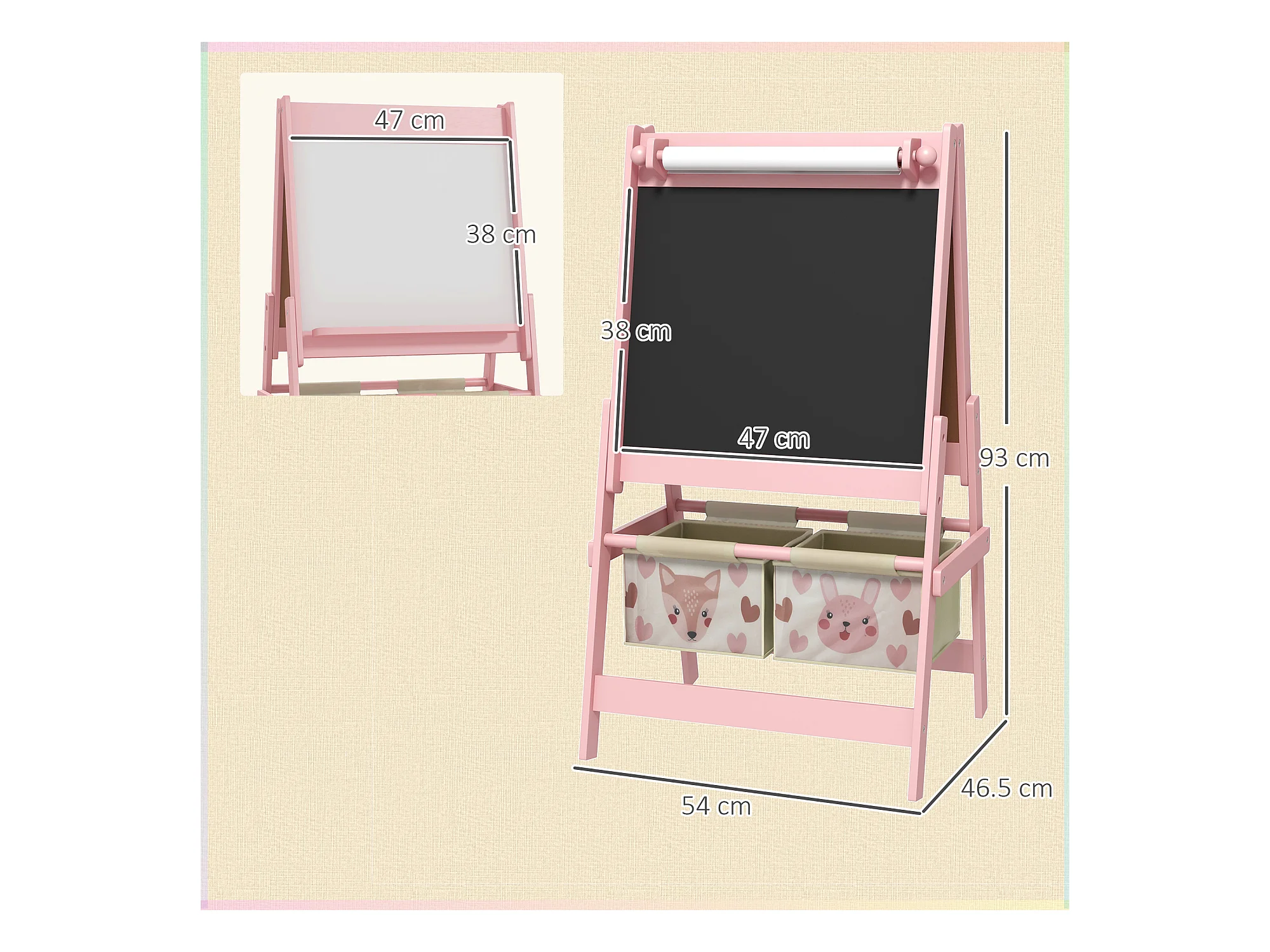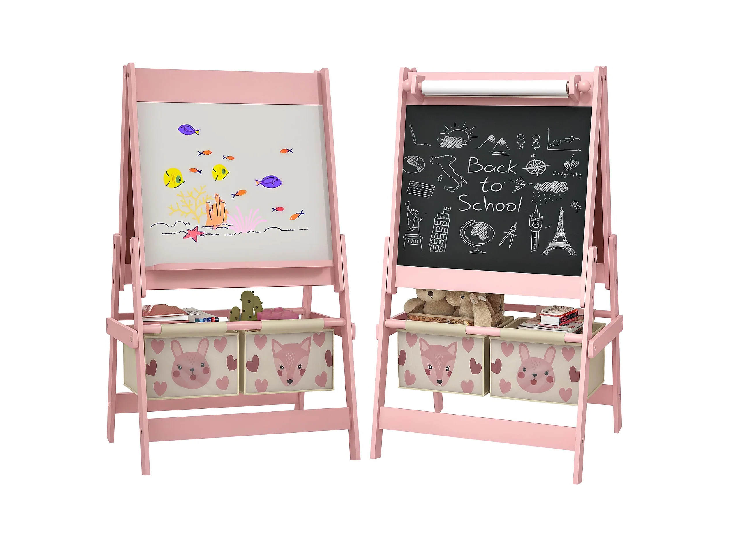 Cavalletto artistico per bambini con lavagna a 2 lati in legno rosa