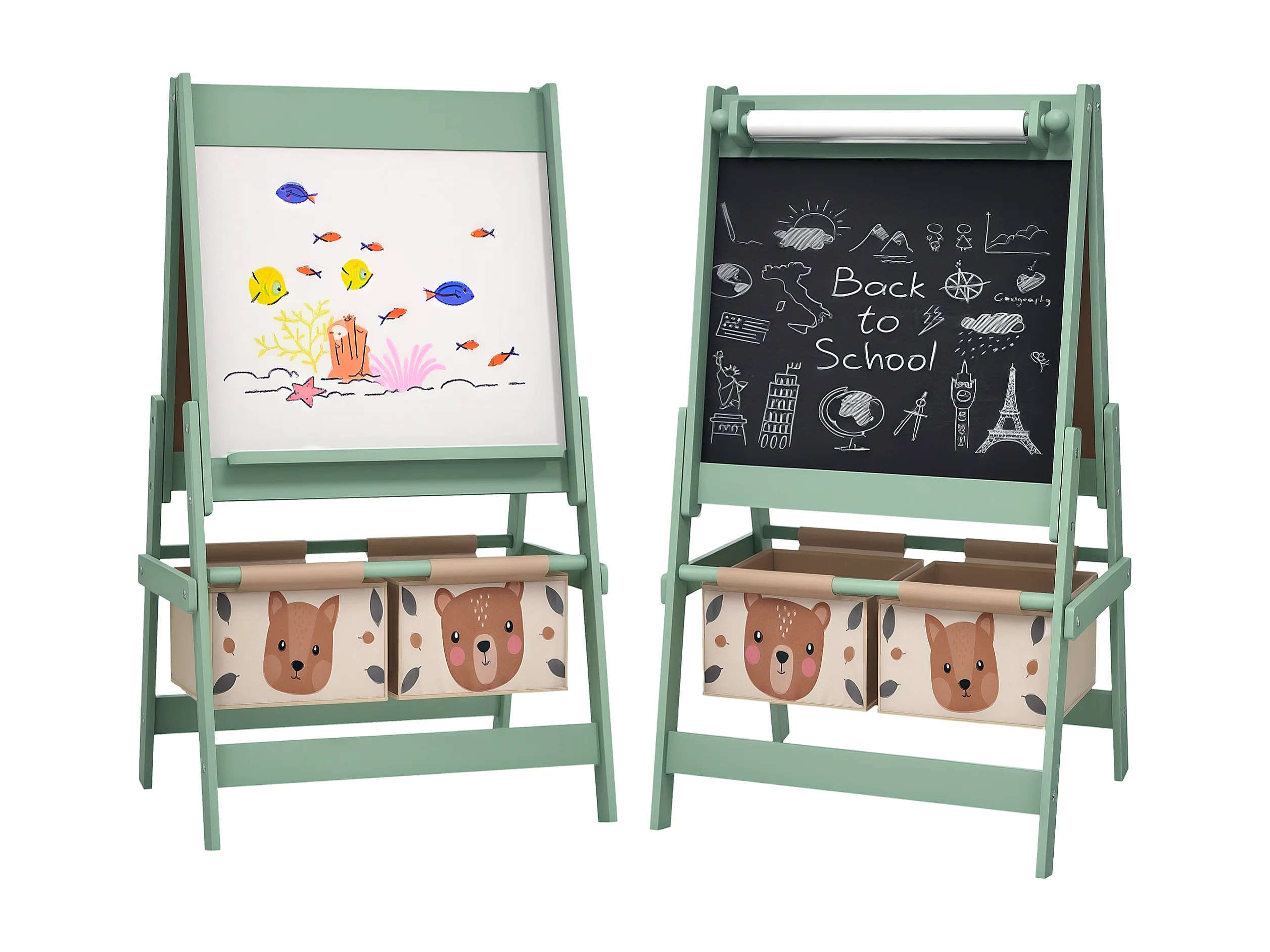 Lavagna per bambini con cavalletto e 2 contenitori verde