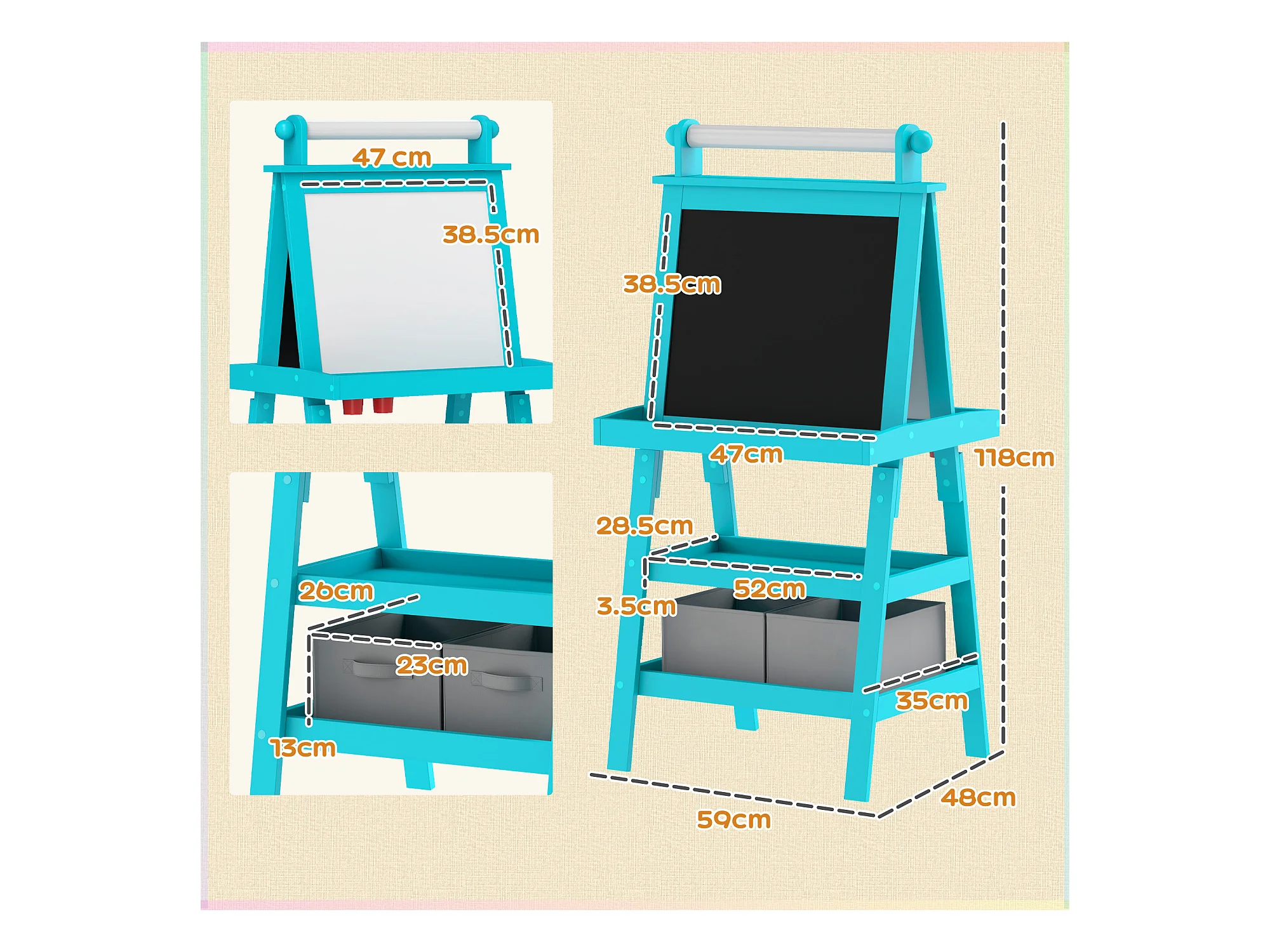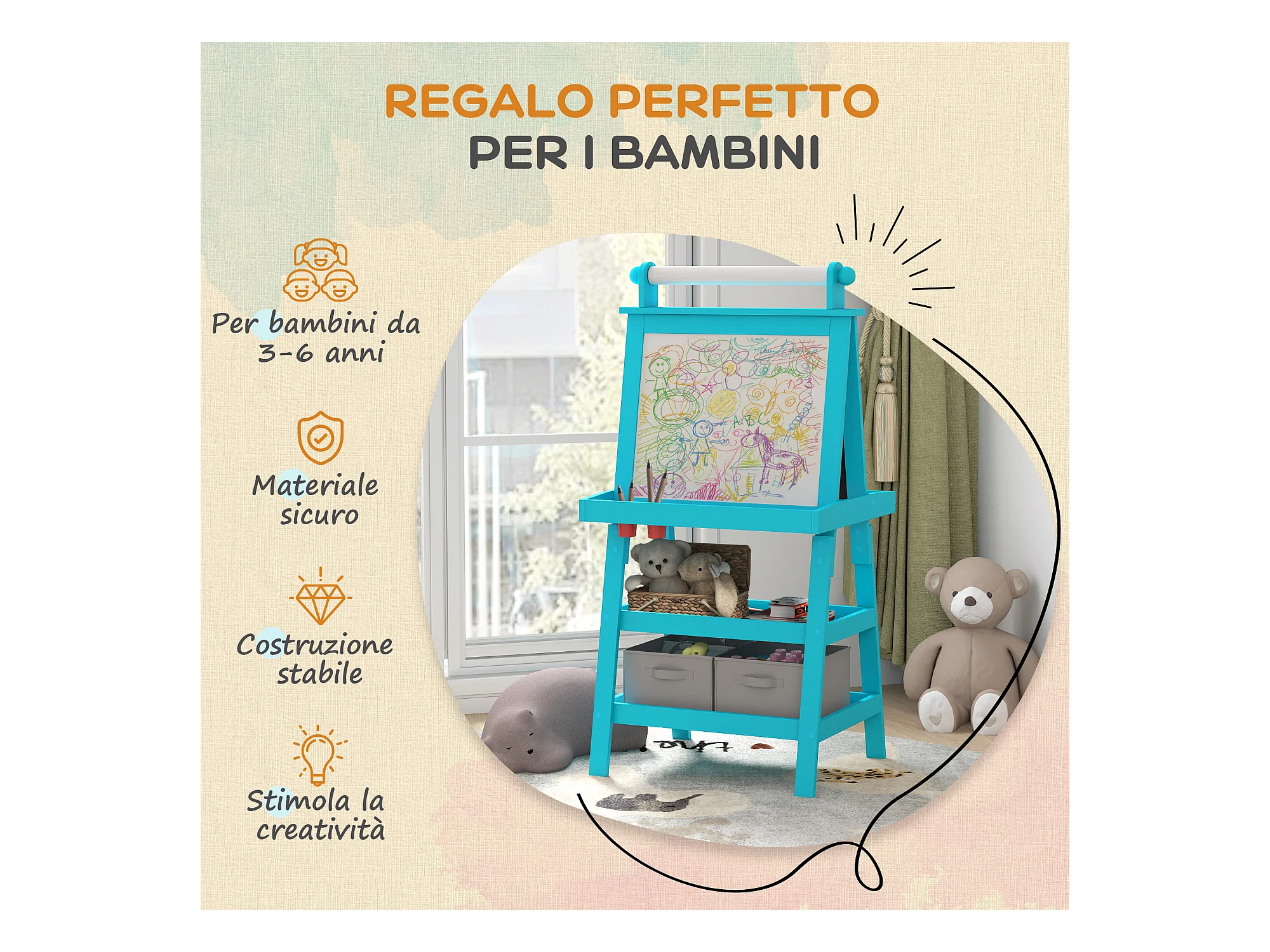 Cavalletto in legno 3in1 con lavagne per bambini 3-6 anni