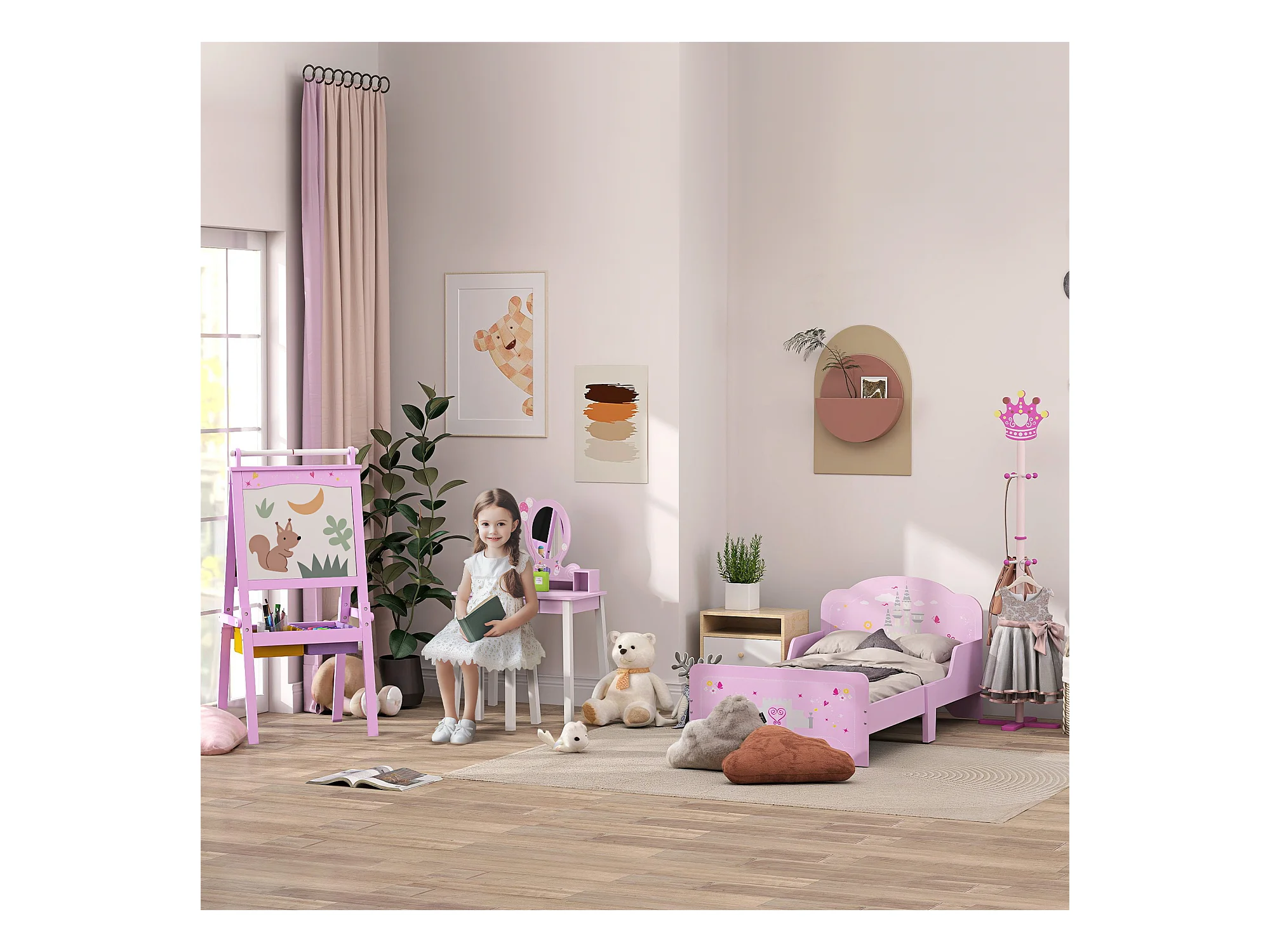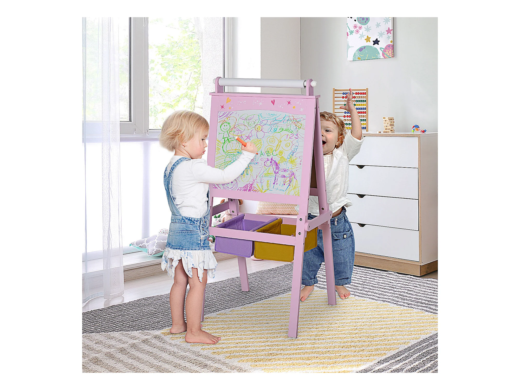 Cavalletto artistico per bambini con lavagna a 2 lati in legno rosa