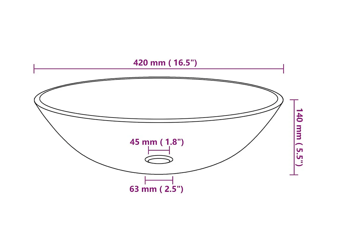 Lavabo bagno lavabo diametro 42 cm con rubinetto e scarico a pulsante in vetro temperato 02_0002850