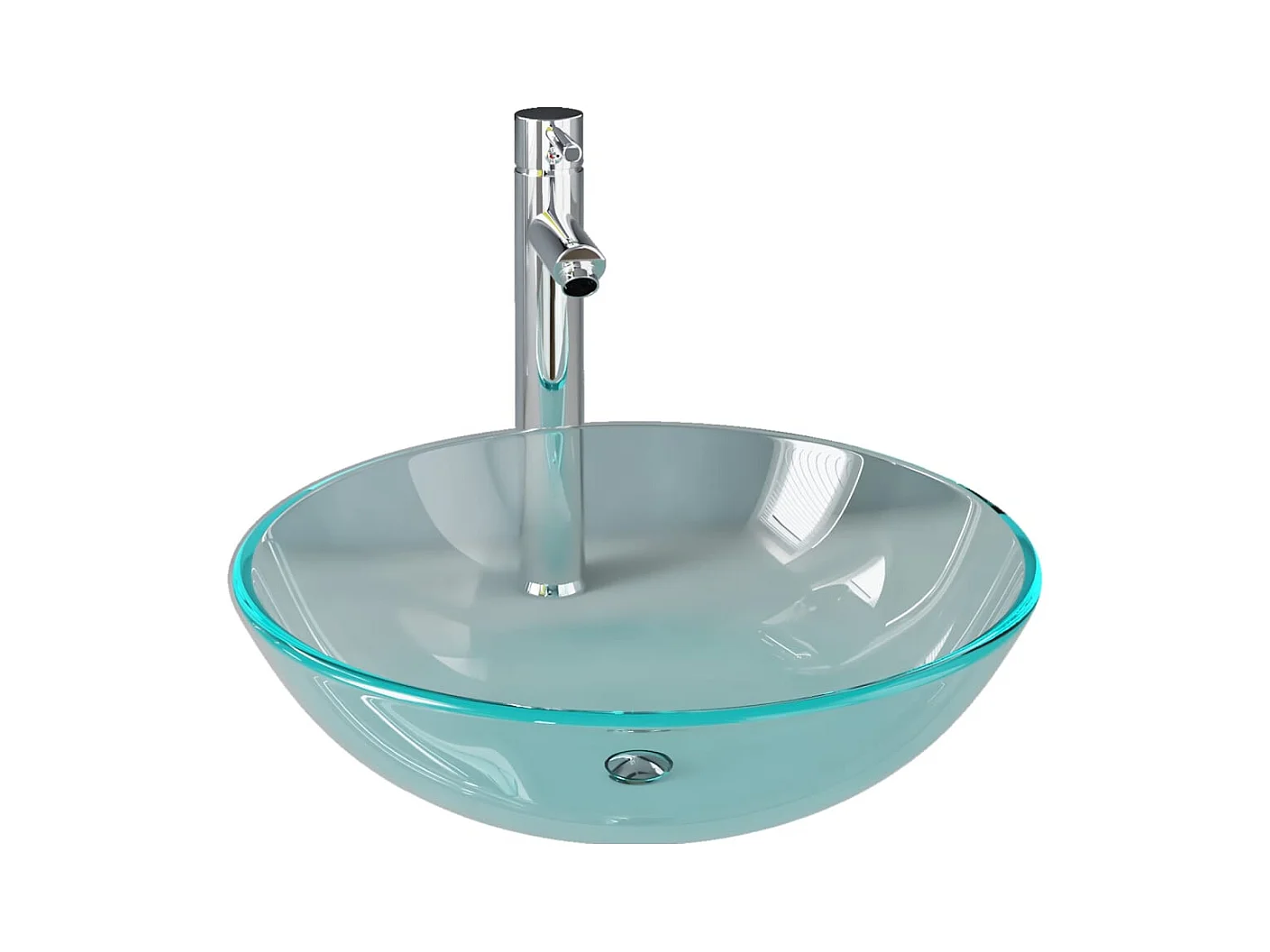 Lavandino da bagno con rubinetto e scarico a saltarello lavabo da appoggio lavabo da bagno lavabo da bagno diametro 42 cm vetro temperato 02_0002863