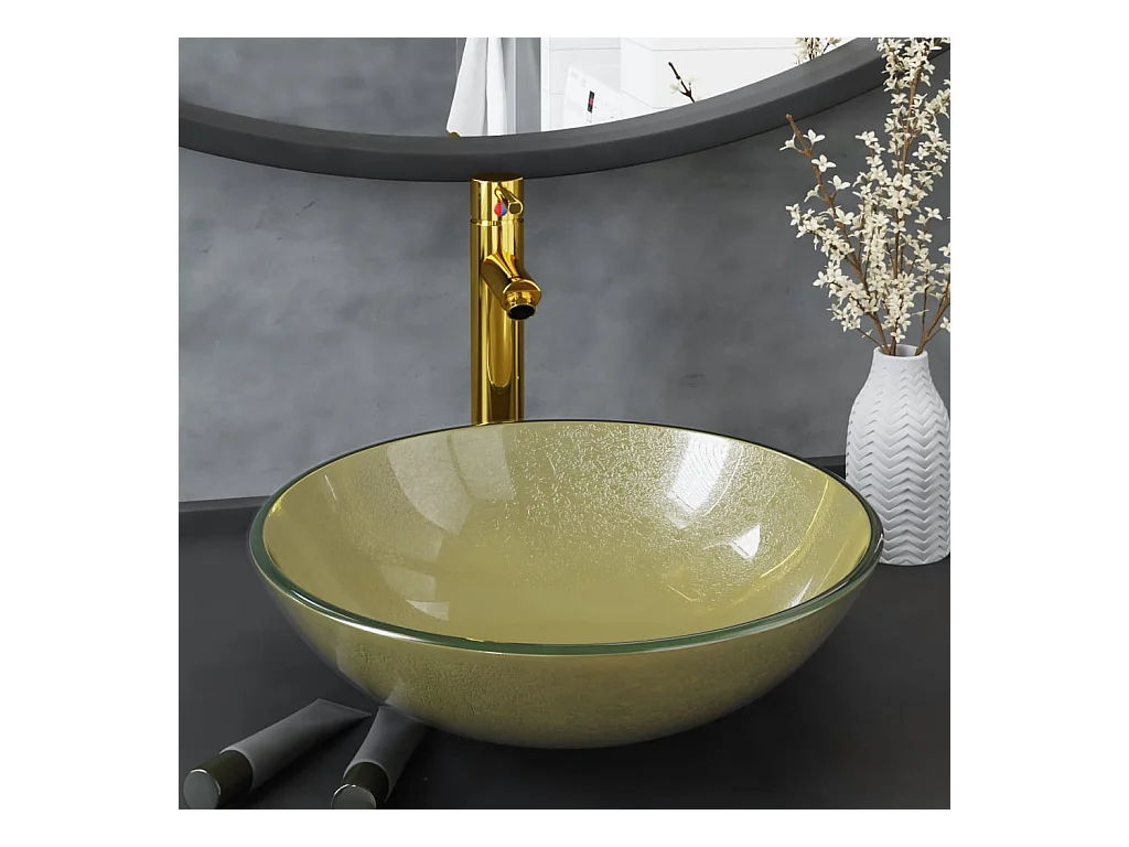 Lavandino del bagno con rubinetto e scarico a pulsante in vetro temperato