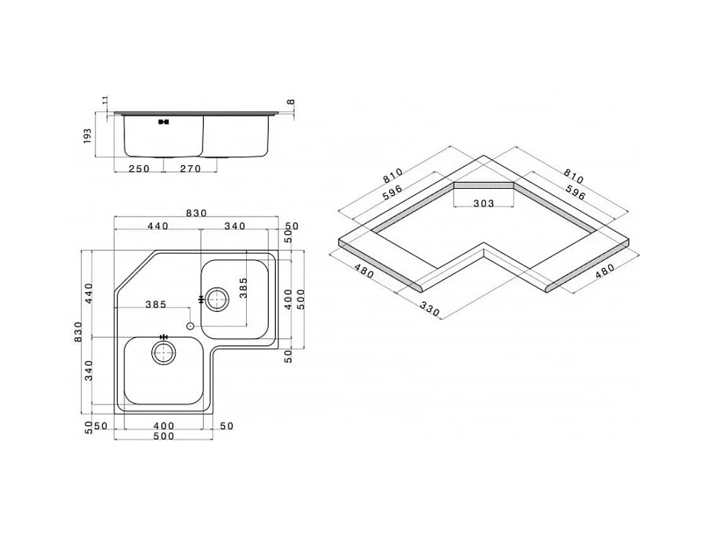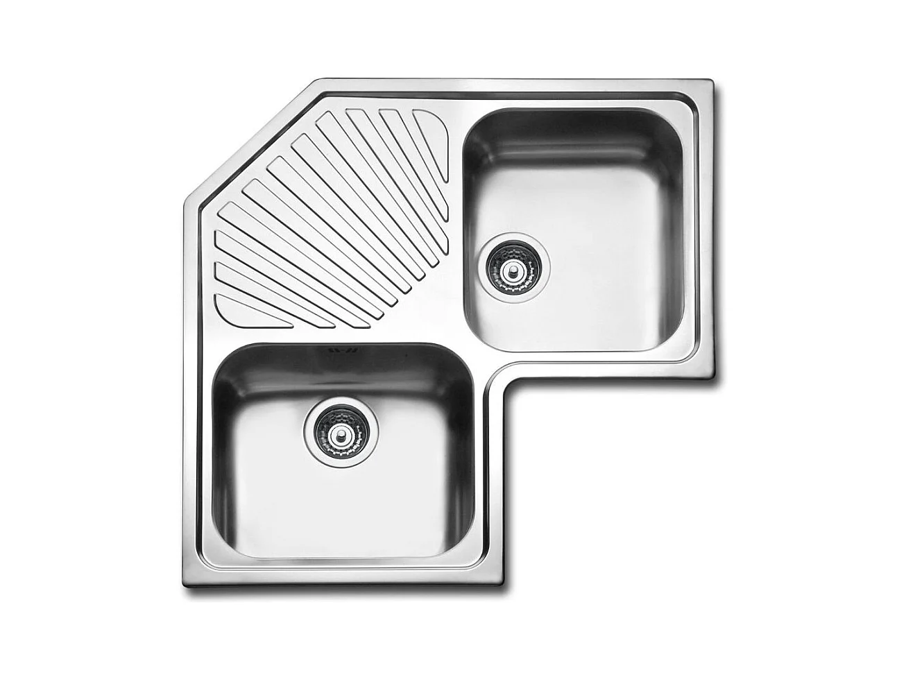 Lavello angolare da incasso ROAN2IBC 2 vasche e gocciolatoio 83x83 cm. inox