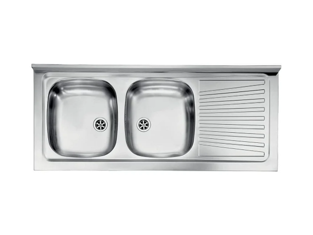 Lavello appoggio 120x50 2 vasche e gocciolatoio destro Mondial inox