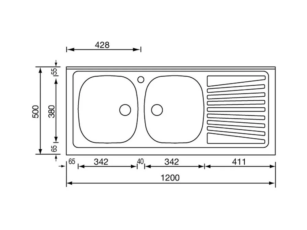 Lavello incasso acciaio inox 116x50 cm doppia vasca e gocciolatoio destro SA138