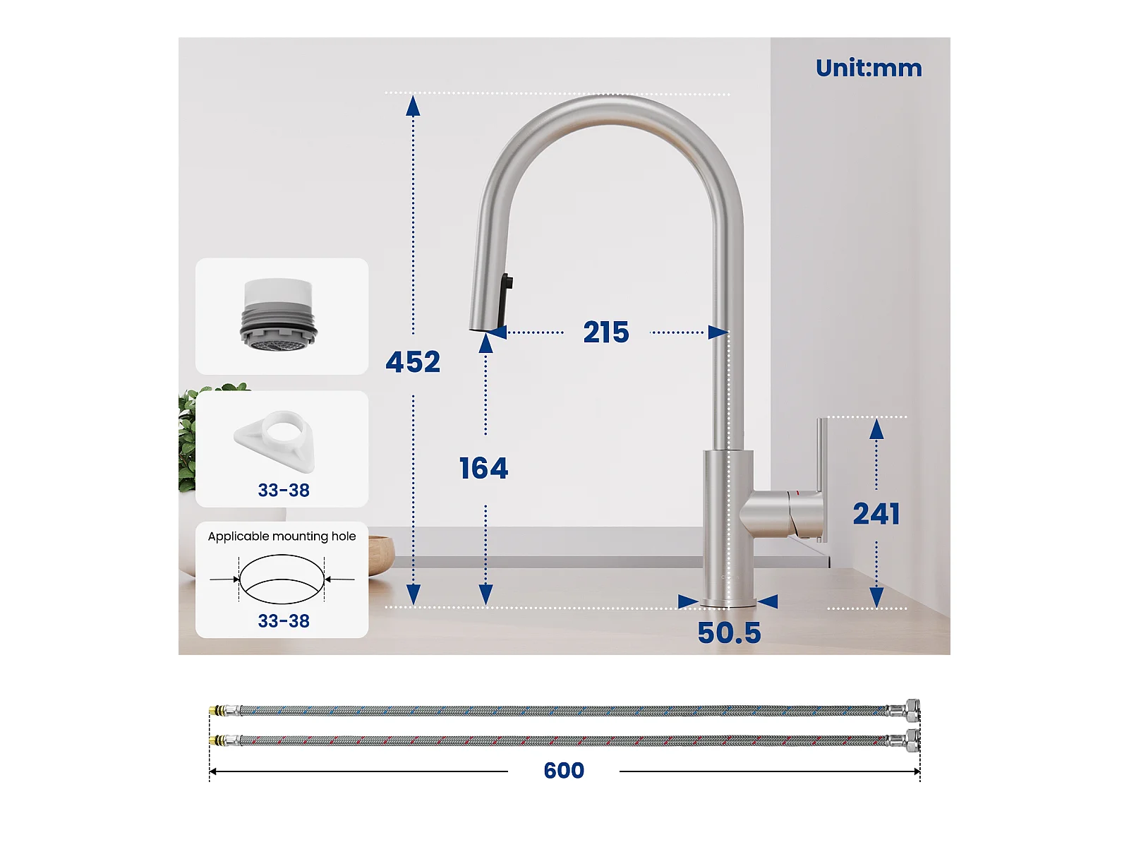 Lavello Cucina 1 Vasca 40×45 cm Lavello Acciaio Inox Spazzolato Lavello Incasso + Miscelatore Cucina Con Doccetta Estraibile, 2 Modalità Uscita Acqua, Spazzolato