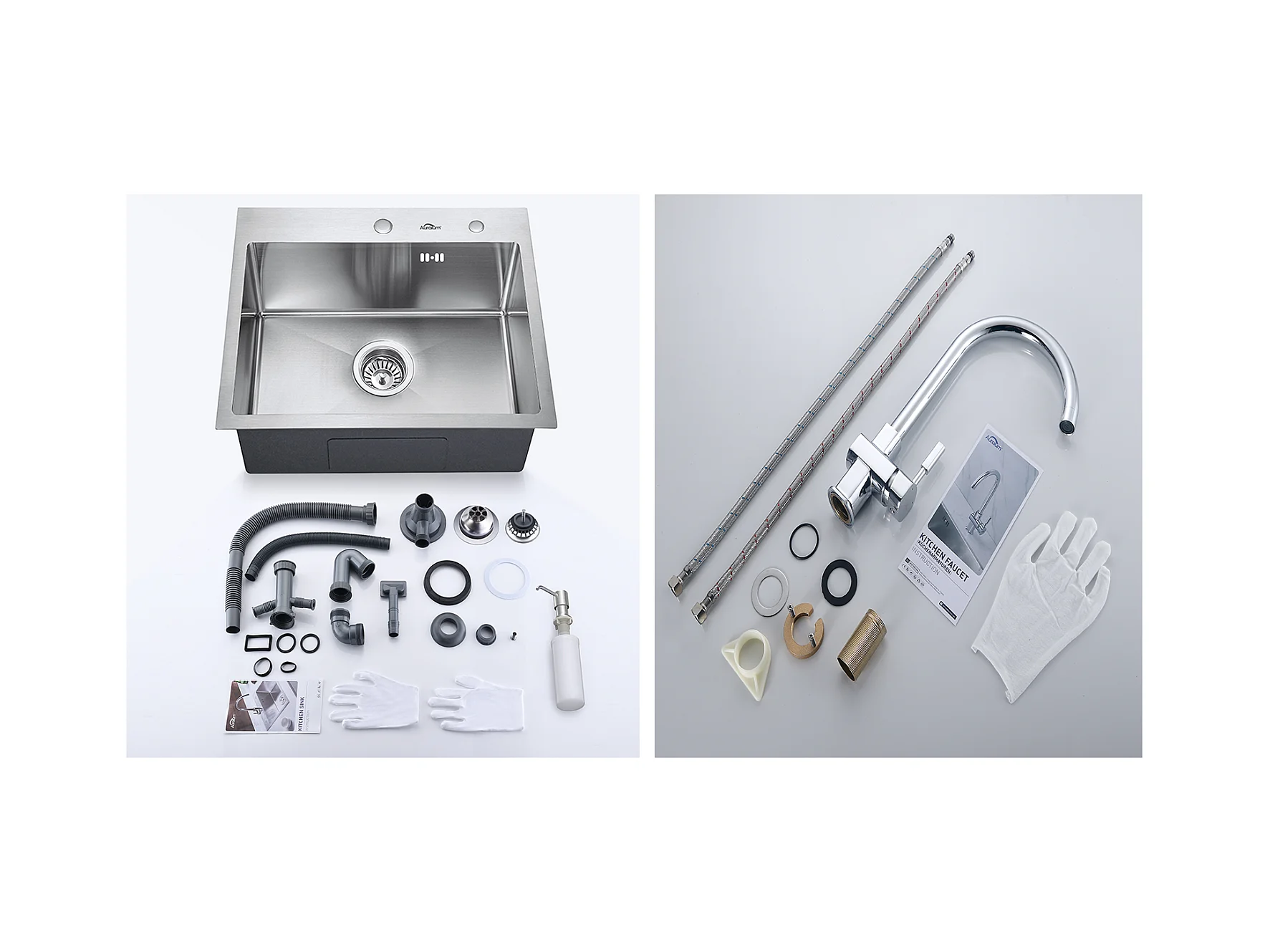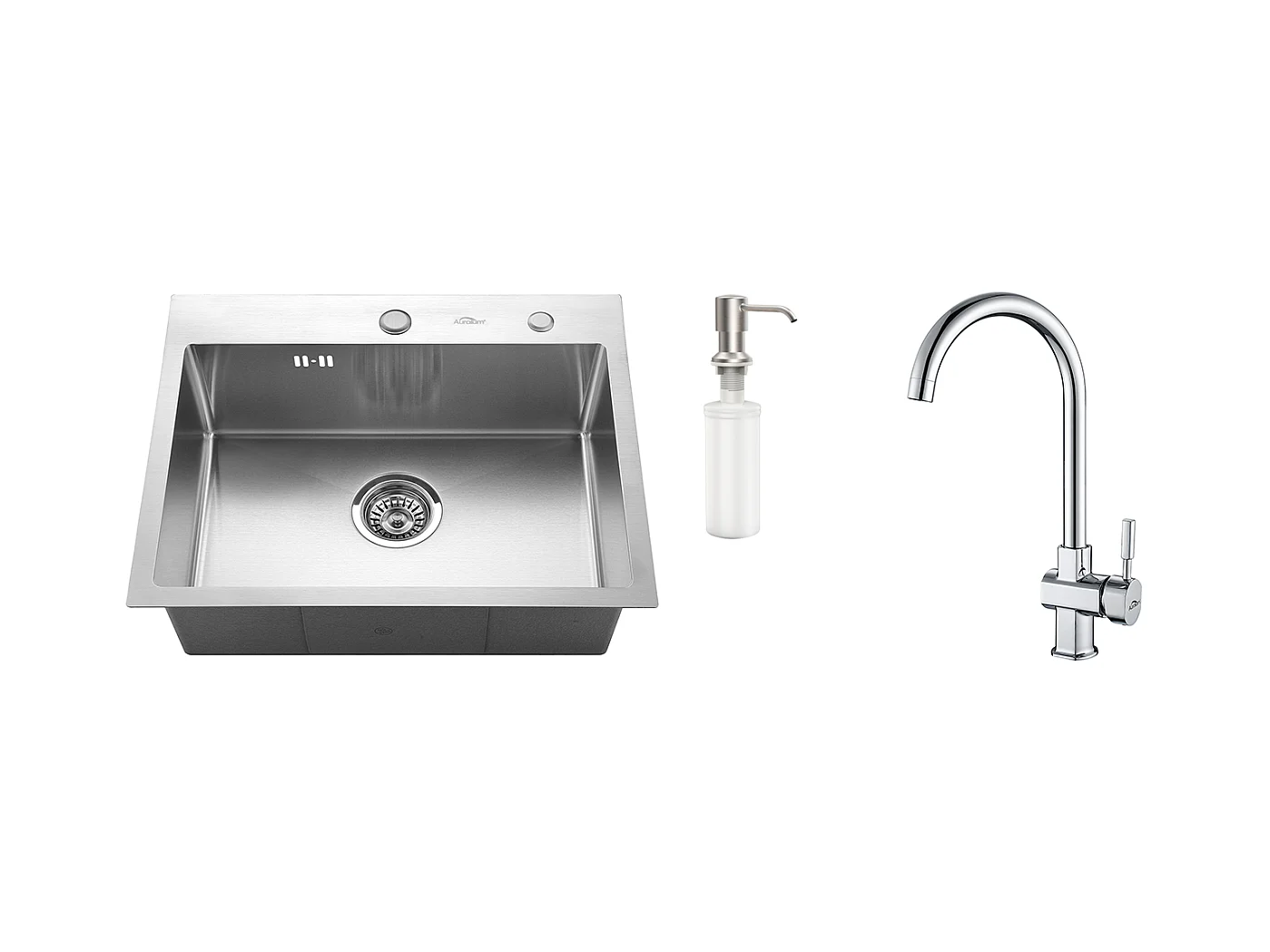 AuraLum Max Lavello Cucina 1 Vassoio 55x45CMLavello incasso con distributore di sapone,sifone/troppo pieno Lavello in acciaio inossidabile,Modello UE