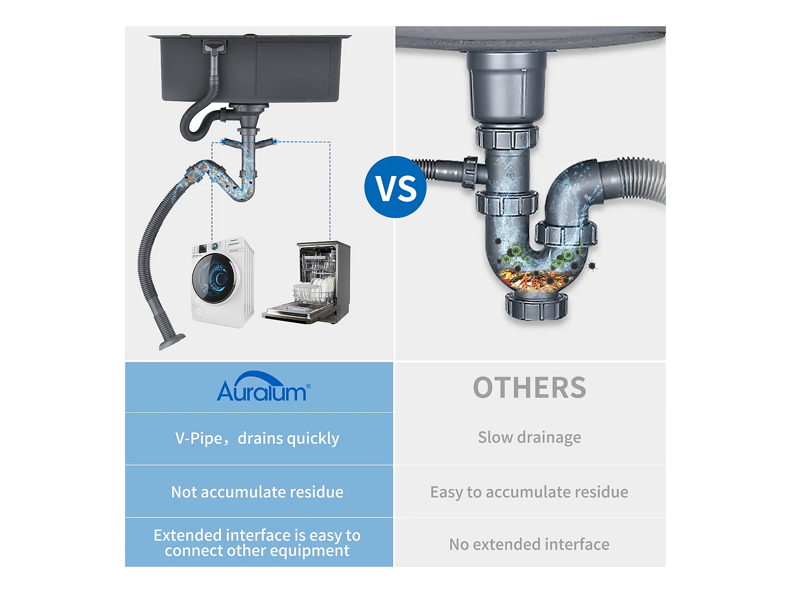 AURALUM MAX Lavello Cucina 1 Vassoio 55*45CM Lavello da incasso e da posare con distributore di sapone