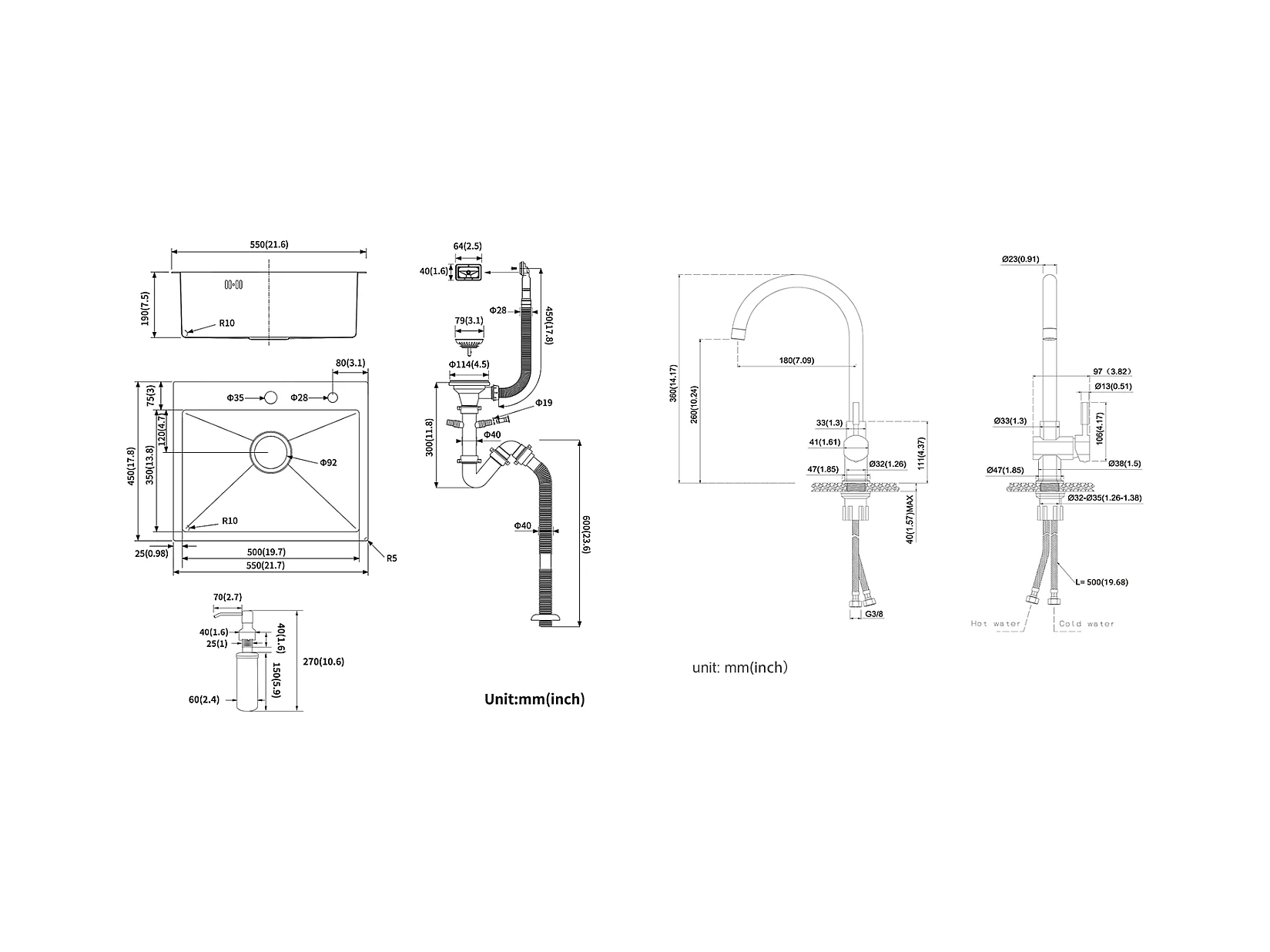 Lavello Cucina 1 vasca 55*45CM Lavello da incasso e da posare con distributore di sapone+rubinetto da cucina in acciaio inox estraibile