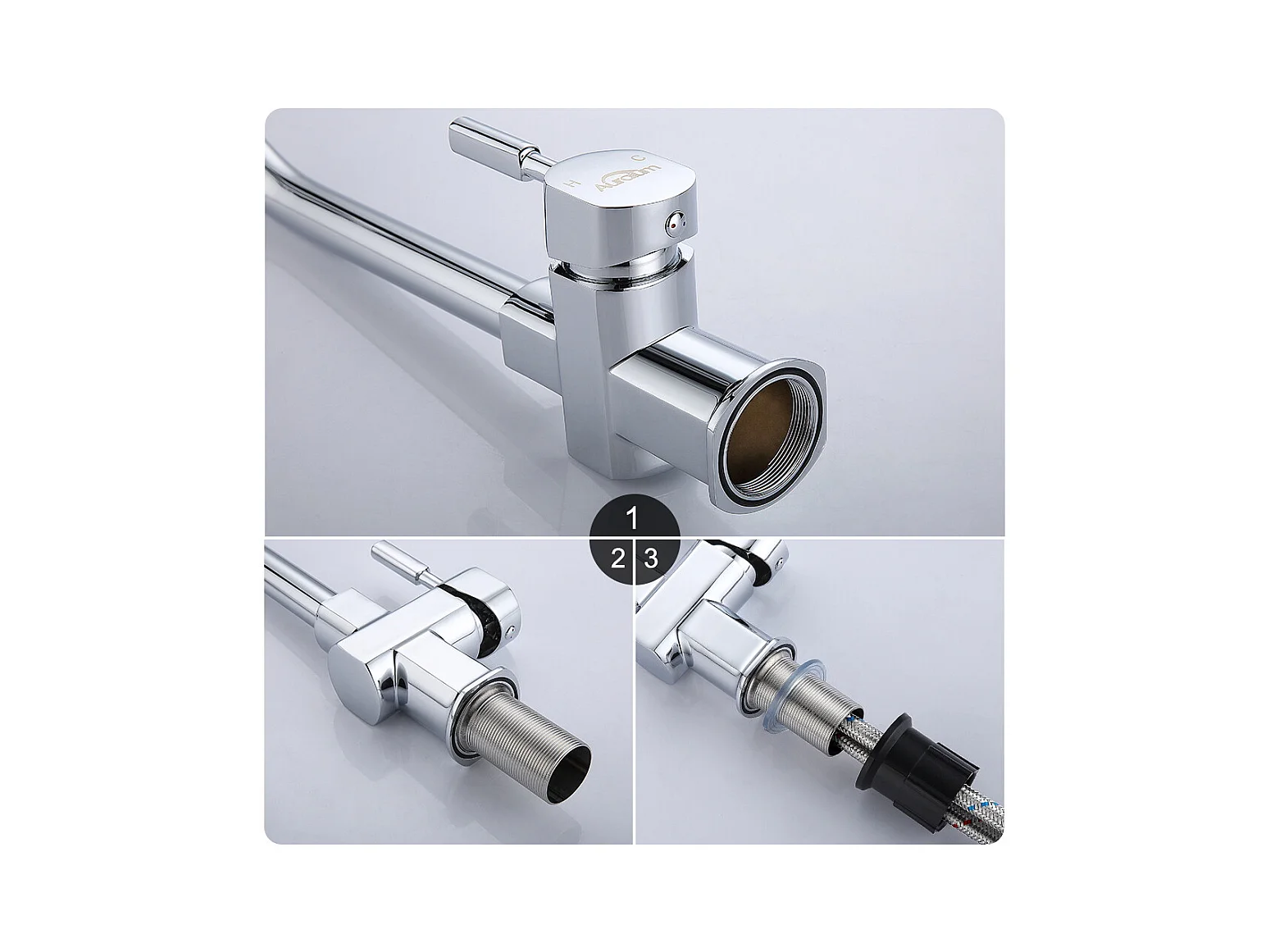 Cecipa max Miscelatore Cucina a Parete Spazzolato, Rubinetto Lavabo a Parete con 2 Getti, Miscelatore Cucina Girevole a 360°, Modello EU