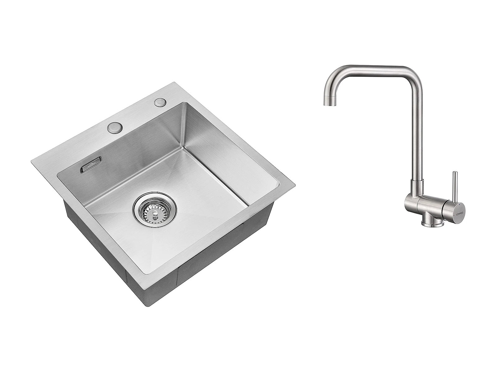 Lavello da cucina 1 Vassoio 45x45CM inossidabile,incassato e da posare+Rubinetto da cucina a molla con doccetta estensibile, 2 modalità,spazzolato