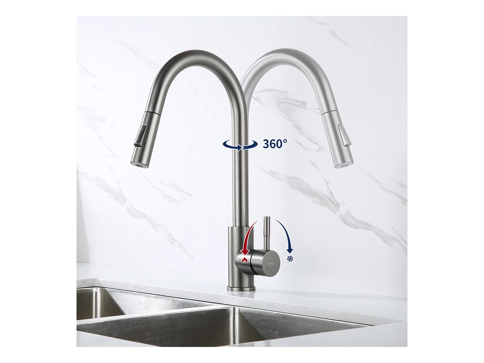 Miscelatore Cucina con Doccia Estraibile Cecipa max - Rubinetto in Acciaio Inox Girevole a 360° - Rubinetto con Gorgogliatore Estraibile - Spazzolato,Modello EU