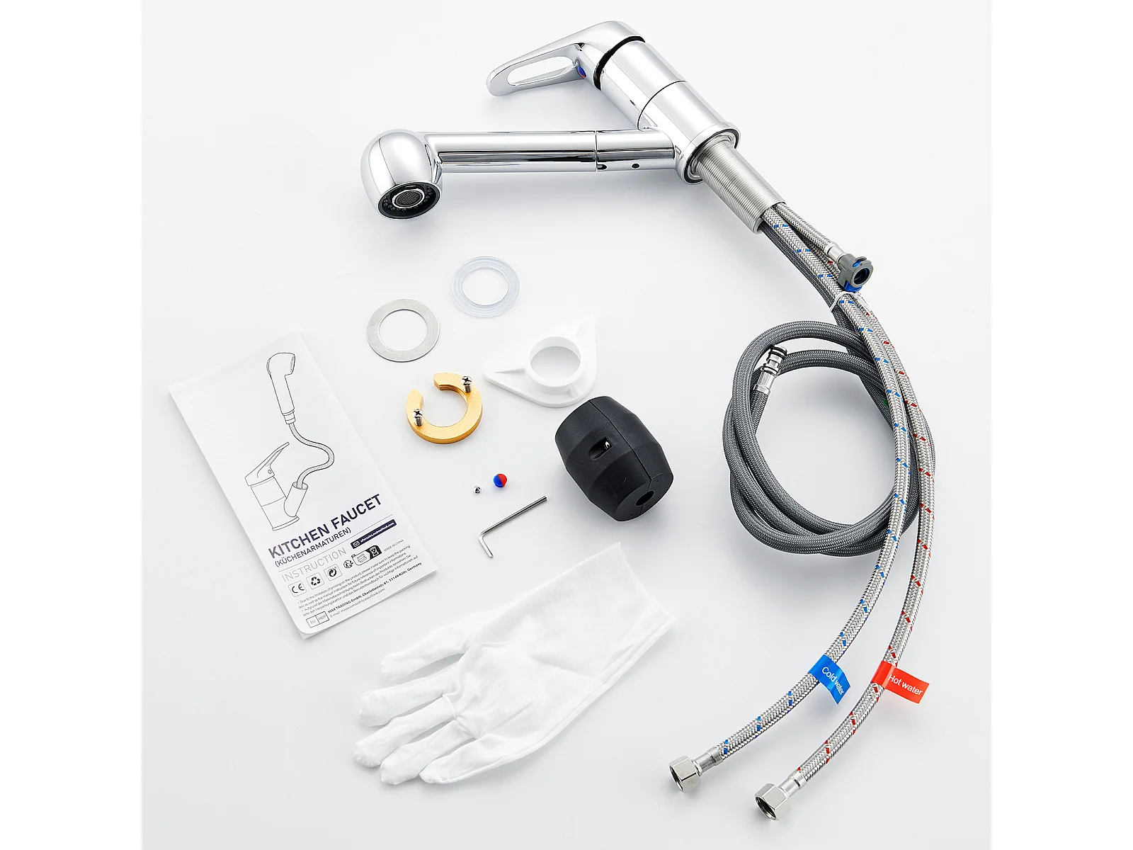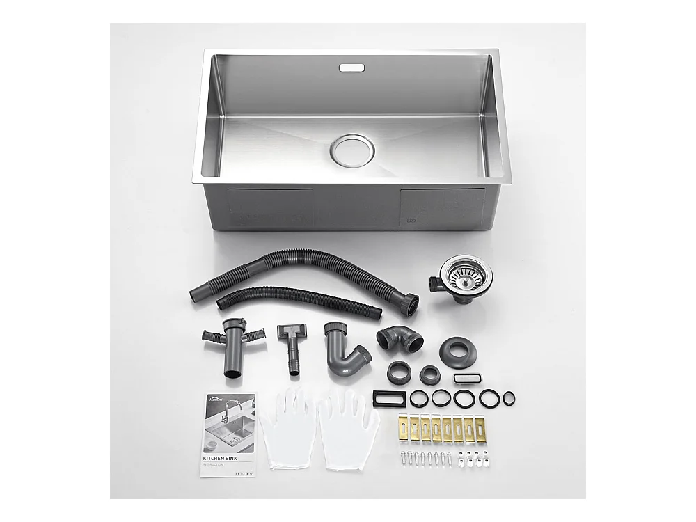 Lavello cucina 1 vasca 74*44*20 cm,con sifone e troppopieno +rubinetto da cucina a molla con getto estensibile,2 modalità di uscita dell'acqua