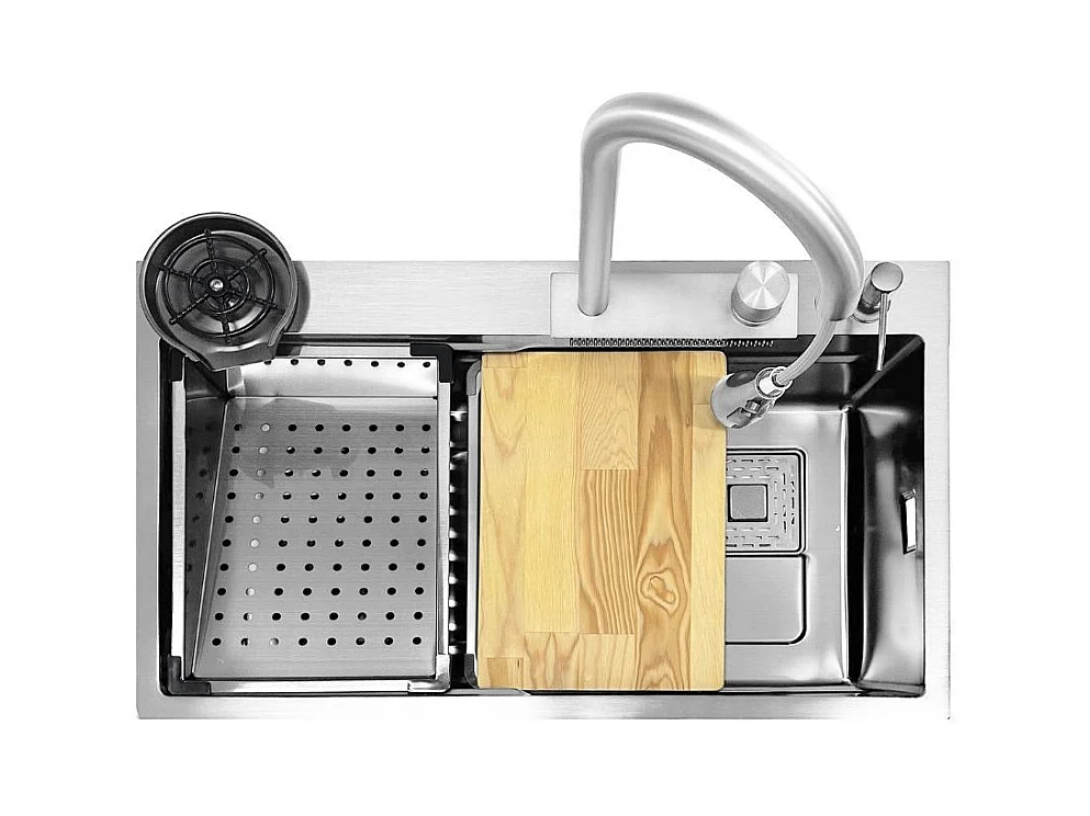 Lavello cucina da incasso una vasca 74x45x20H inox spazzolato SA3541 con accessori