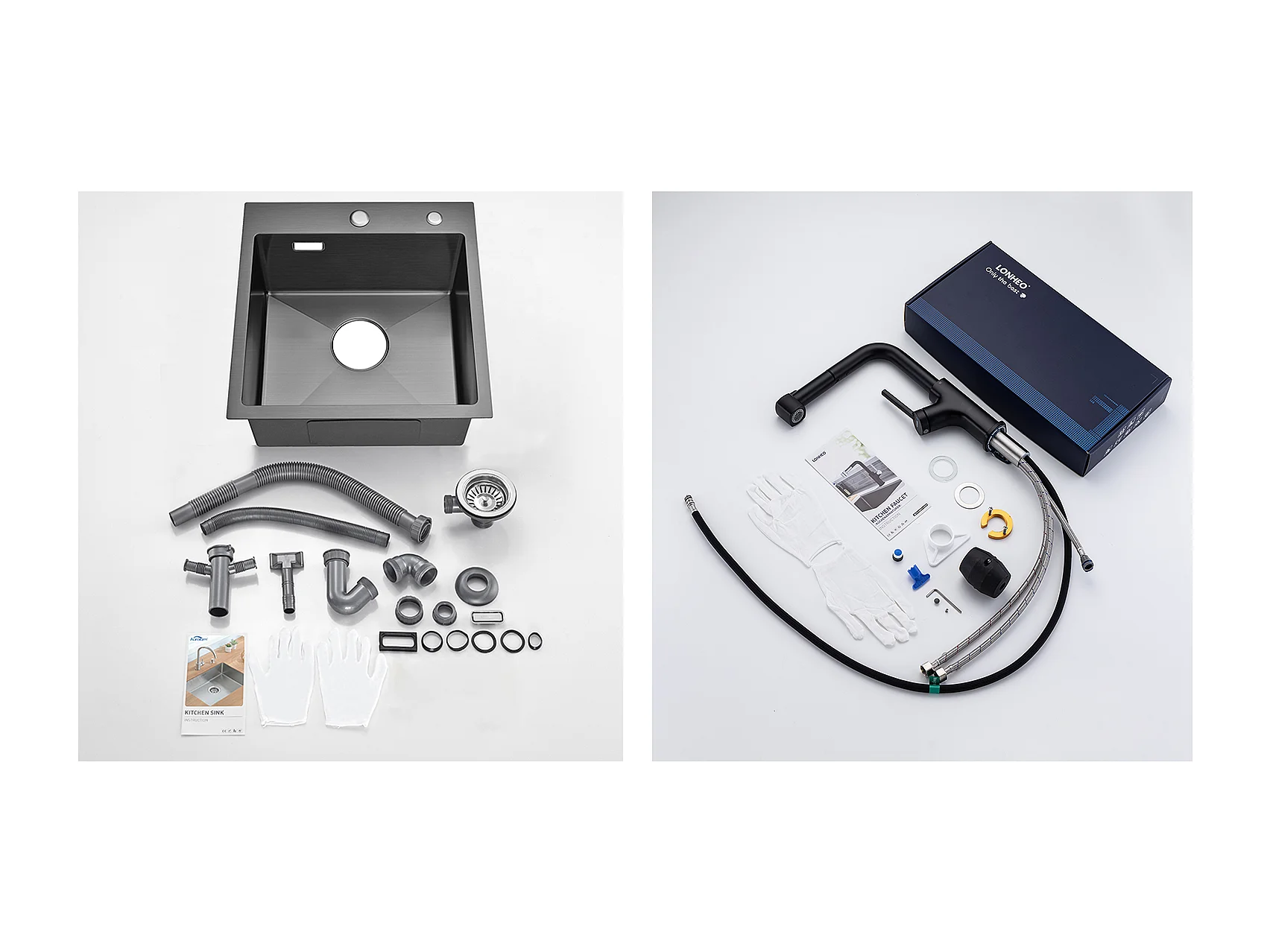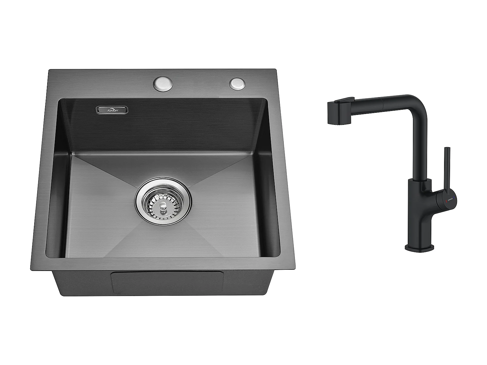 Lavello Cucina Nero 1 vasca 45x45CMAcciaio inossidabile 304, incassato e da posare + Rubinetto da cucina nero con doccia estraibile