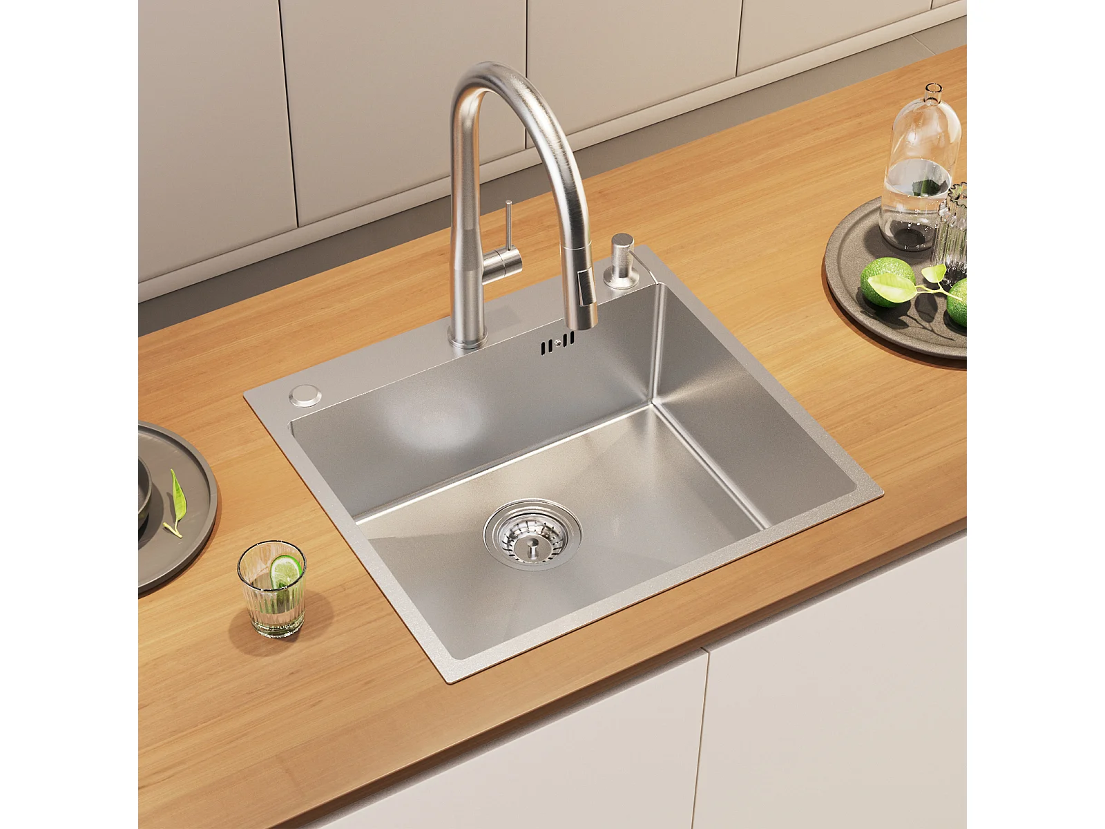 Lavello Cucina 54*49*20 CM,da incasso/a Fleur de Plan con distributore di sapone,argento+rubinetto da cucina flessibile becco alto orientabile