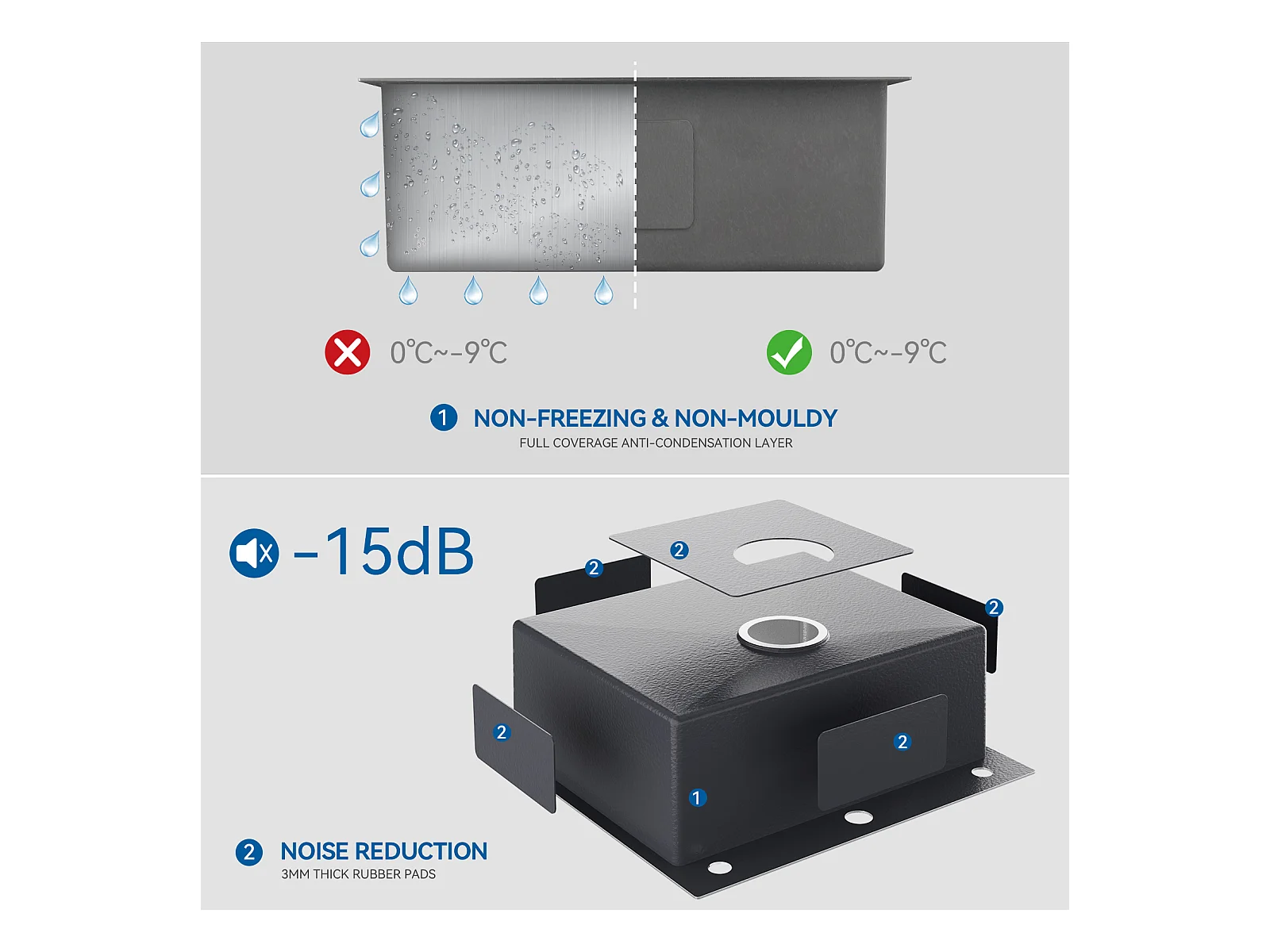 Lavello incasso 44x44x20CM-Lavello da cucina 1 Vaschetta inossidabile 304,Argento+RobiNet Cucina Doccetta estraibile Due getti Girevole 360°