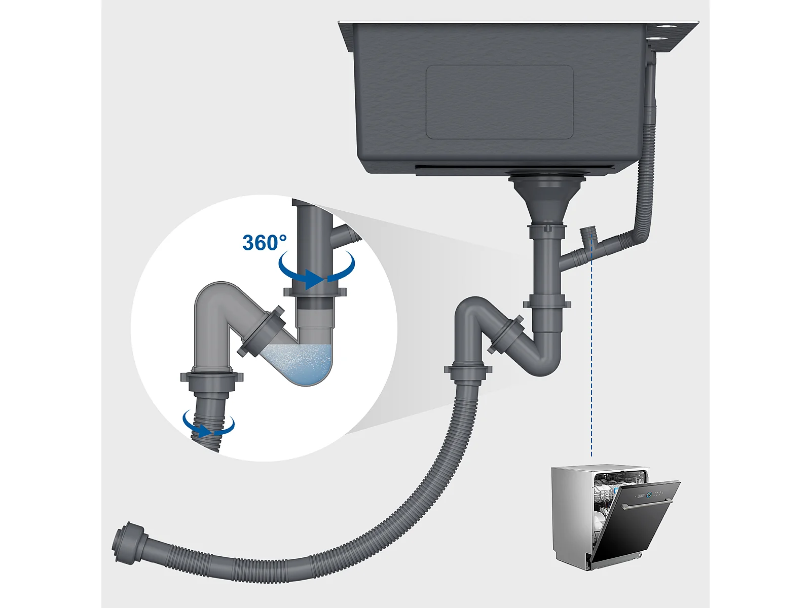 Lavello da cucina 54*49*20 CM, da incasso/a Fleur de PlanCon Distributore Sapone,Argento+Rubinetto Cucina Rotativo 360° Doccia Estraibile