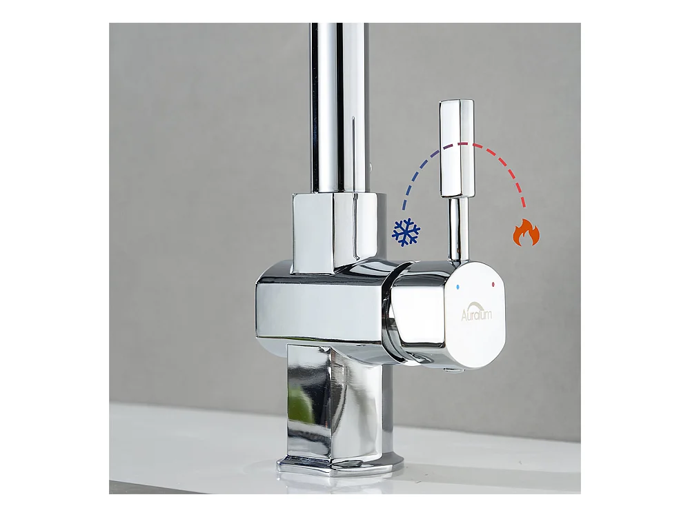 AuraLum Max Lavello da cucina 54*49*20 CM, Con Distributore di Sapone,Argento+Miscelatore Cucina Pieghevole Girevole 360° Acqua fredda Calda