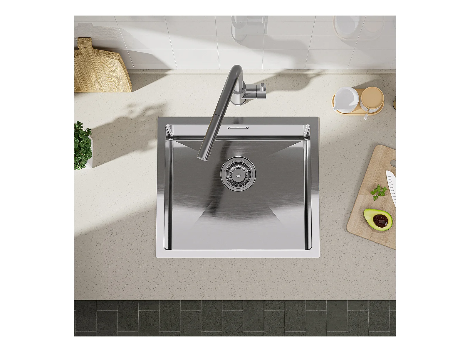 Lavello da cucina CECIPA MAX Lavello da cucina in acciaio inossidabile spazzolato a 1 vasca 50*44 cm + Miscelatore da cucina in acciaio inossidabile spazzolato