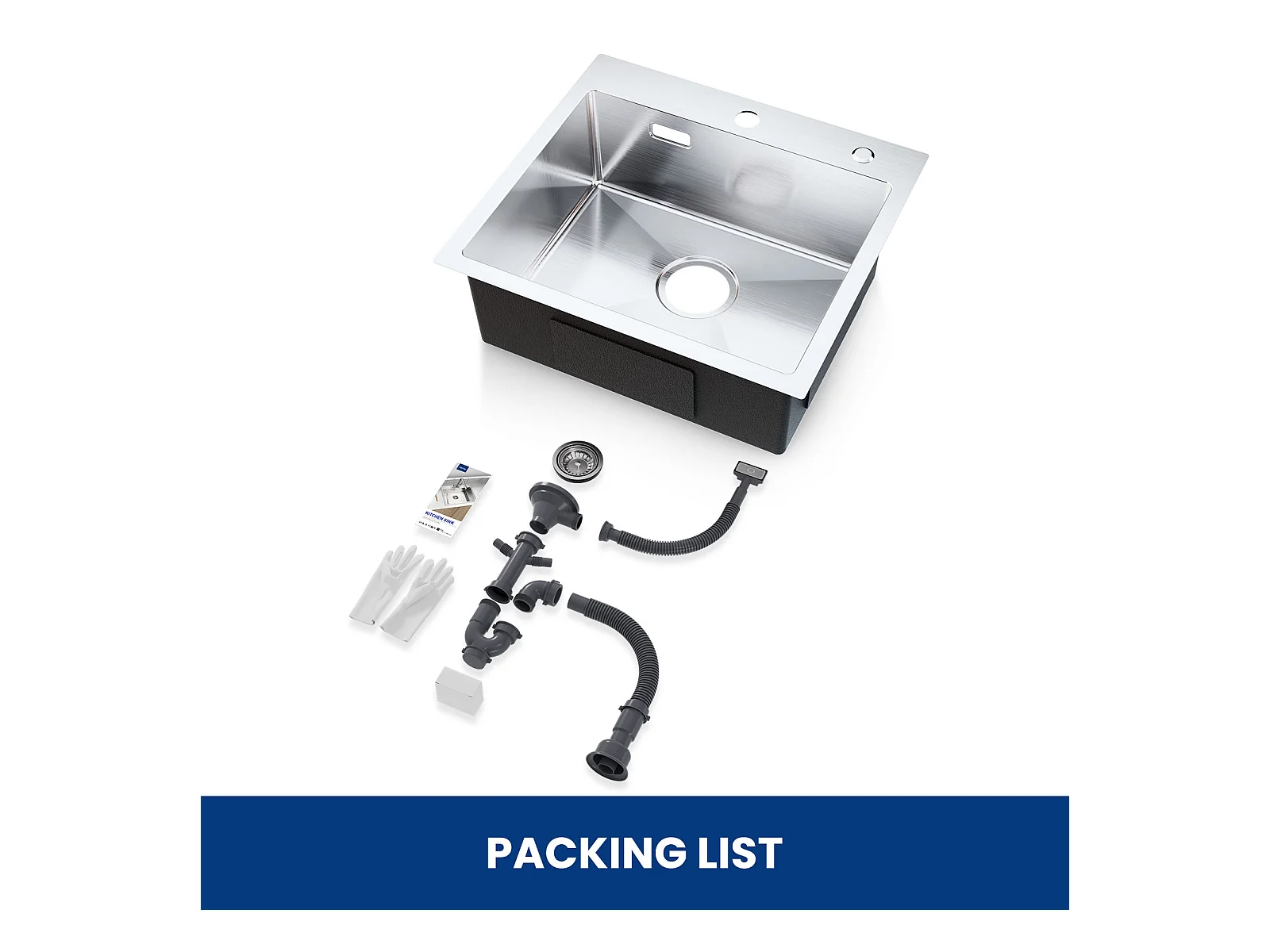 Cecipa max 2 in 1 Lavello 1 vasca Lavello da cucina quadrato in acciaio inox spazzolato 50*45*18,5 cm + rubinetto da cucina nero