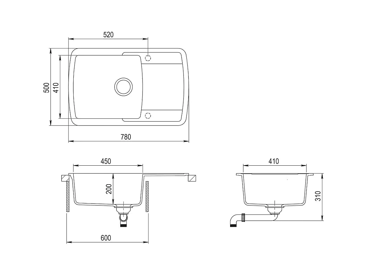 Lavello da cucina in granito grigio con foro di troppo pieno