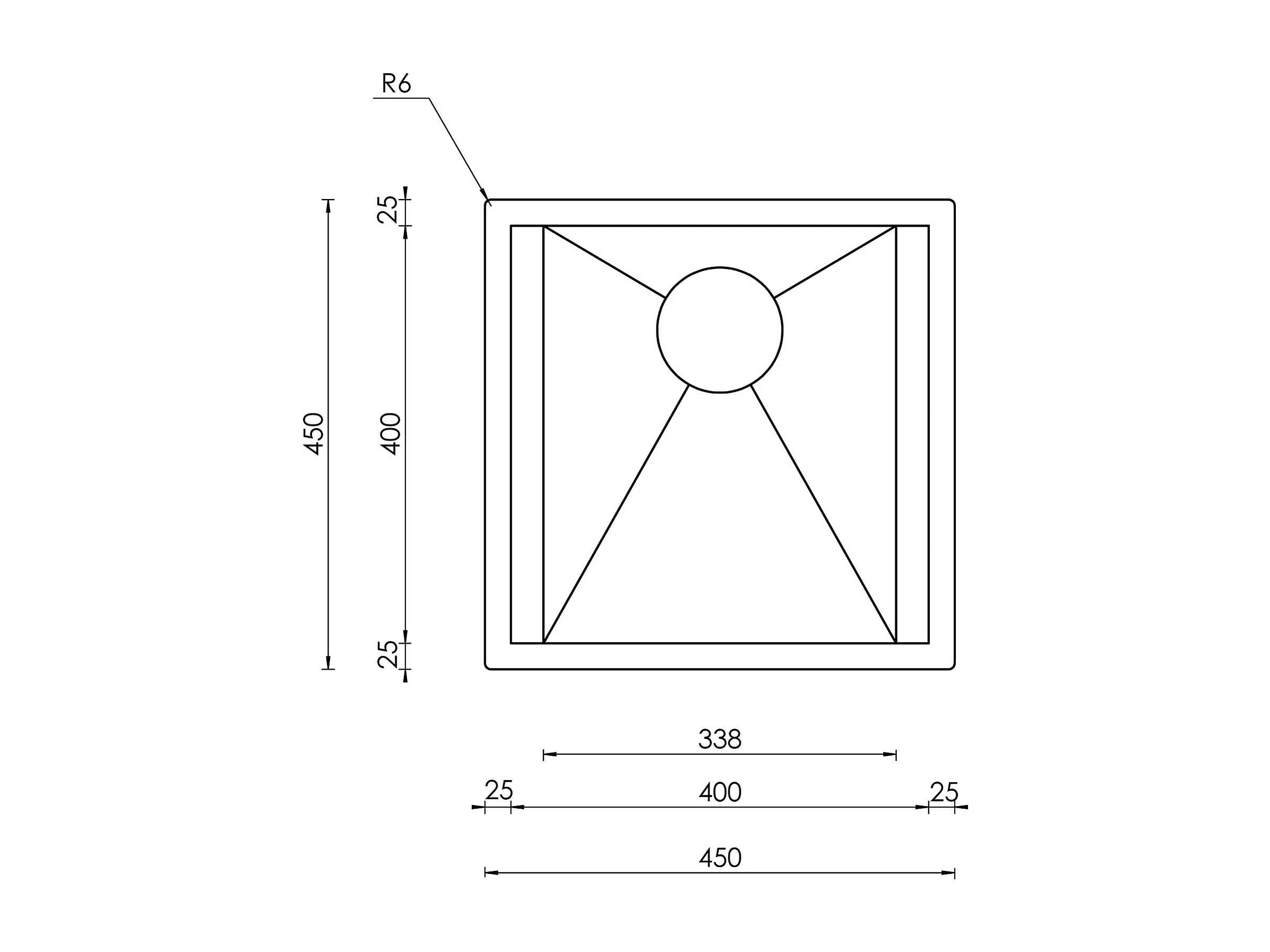 Lavello FOCUS 3" 1 vasca ACCIAIO INOX INCASSO SOTTOTOP 45X45 prof. 19
