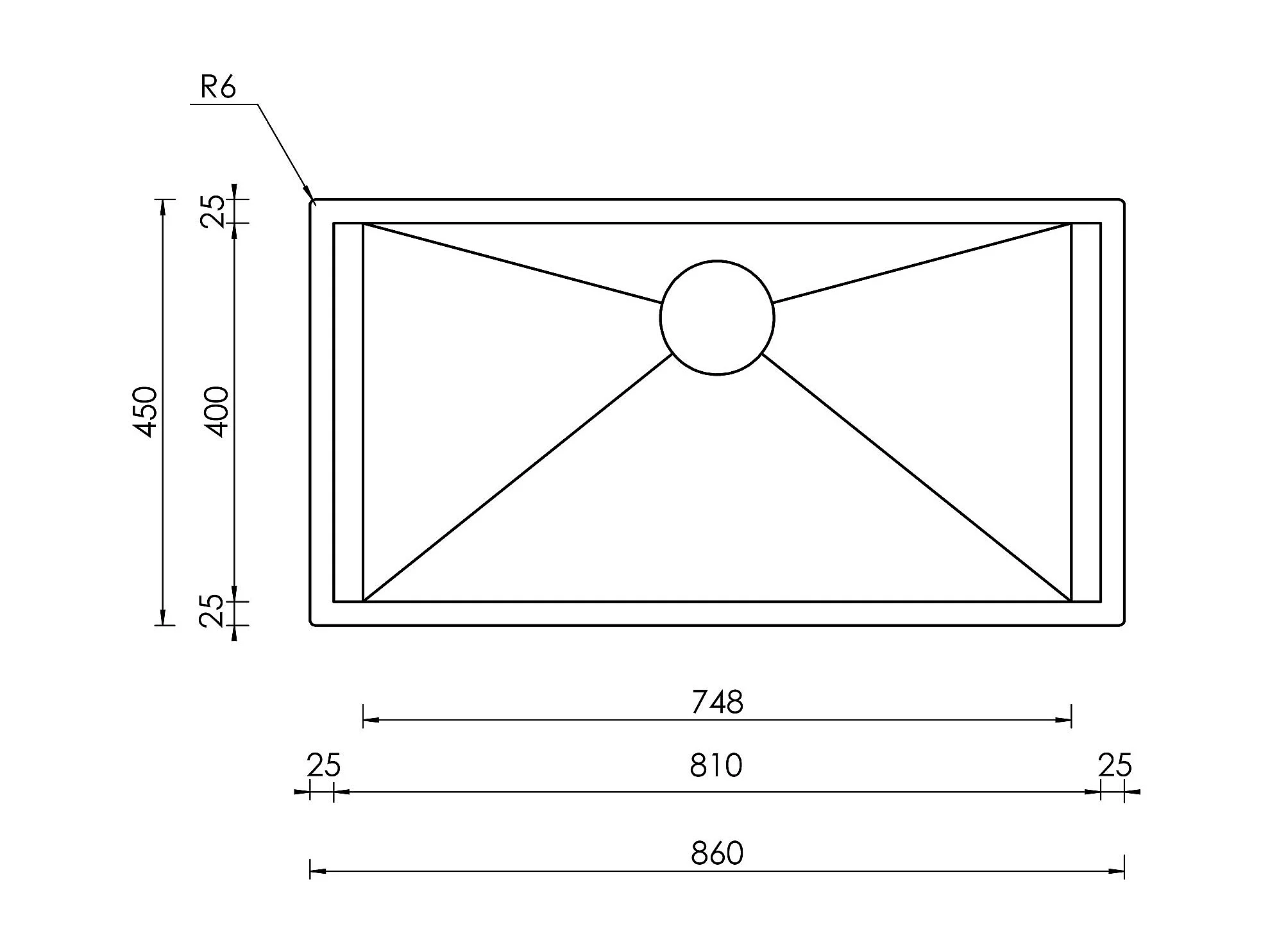 Lavello FOCUS 3" 1 vasca ACCIAIO INOX INCASSO SOTTOTOP 86X45 prof.19