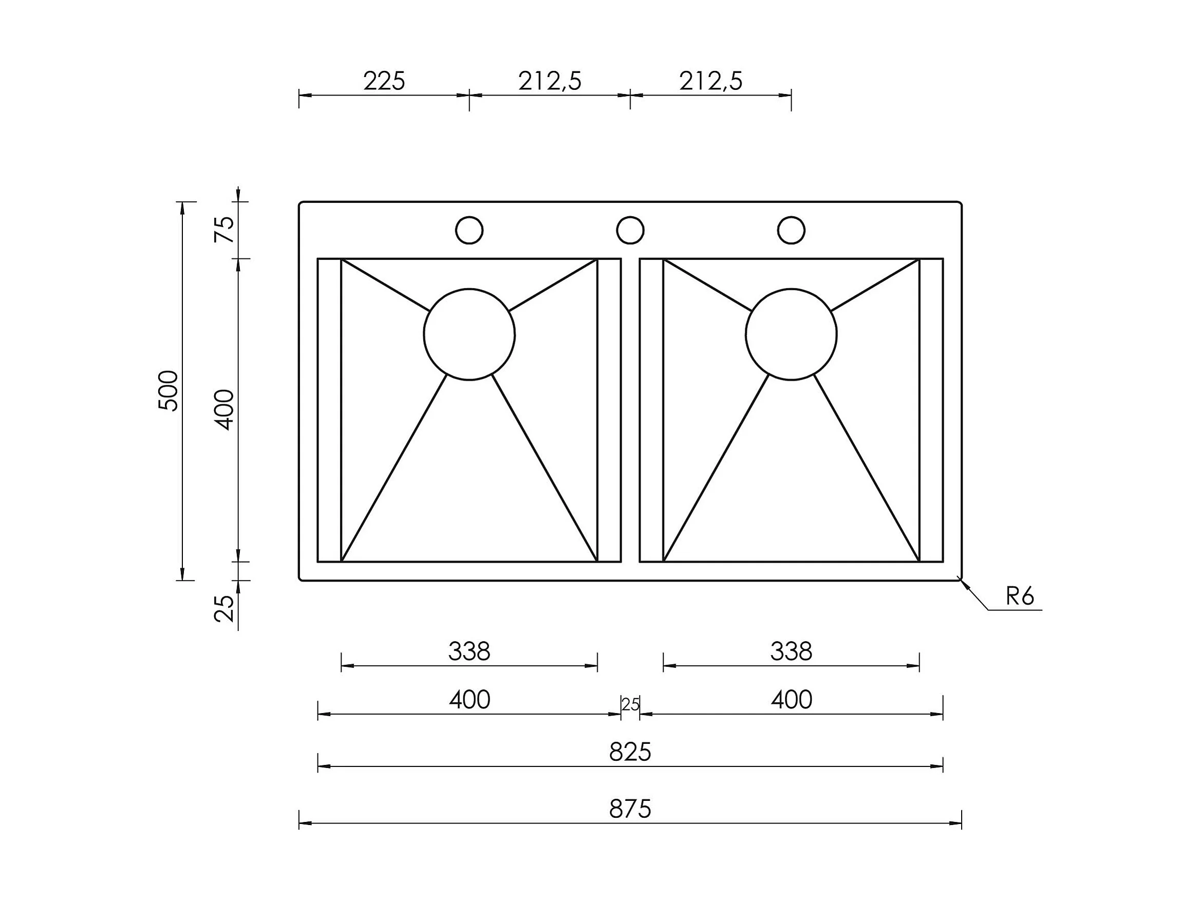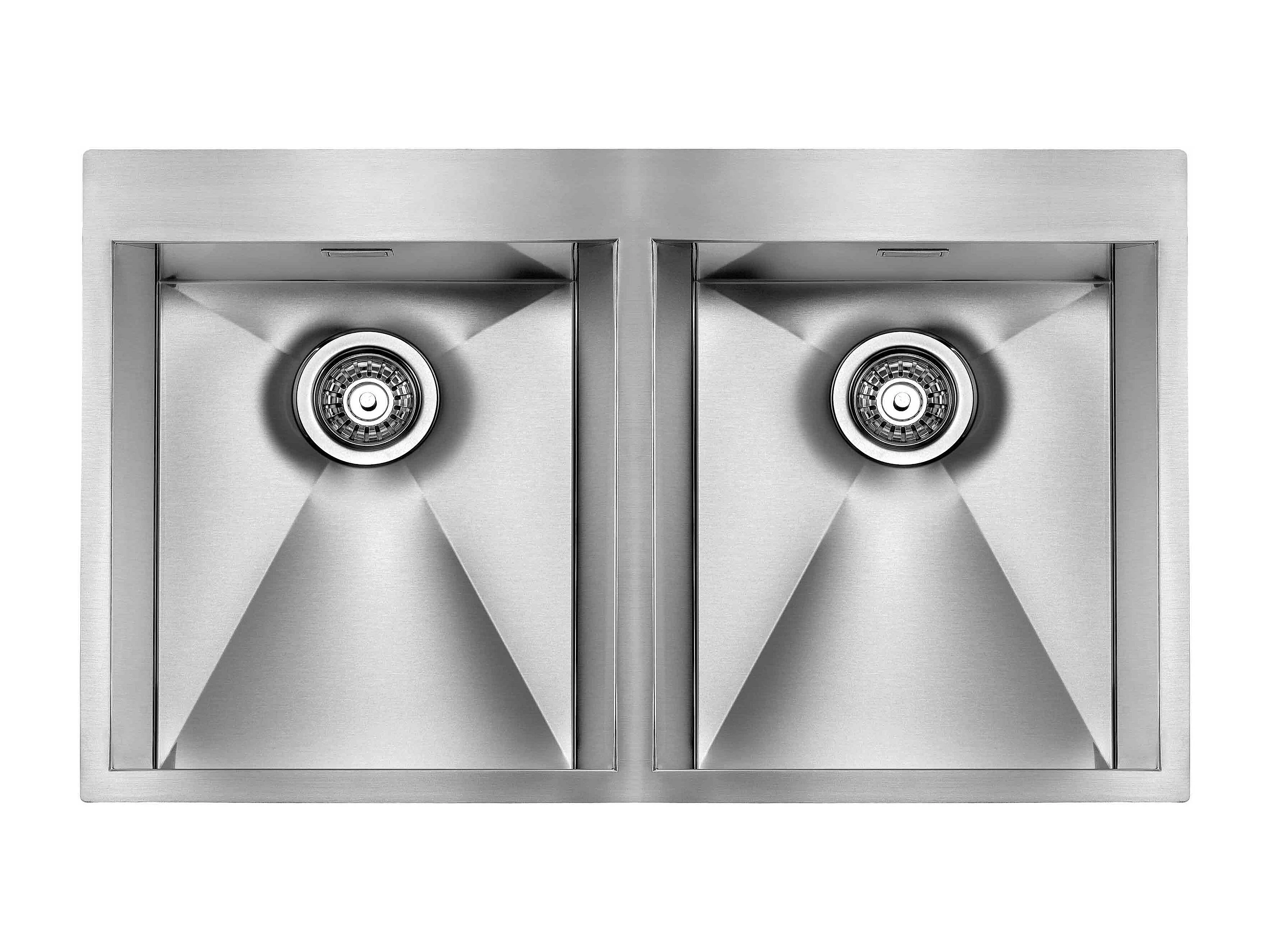 Lavello FOCUS 3" 2 vasche ACCIAIO INOX INCASSO SOTTOTOP 87,5X45 prof.19