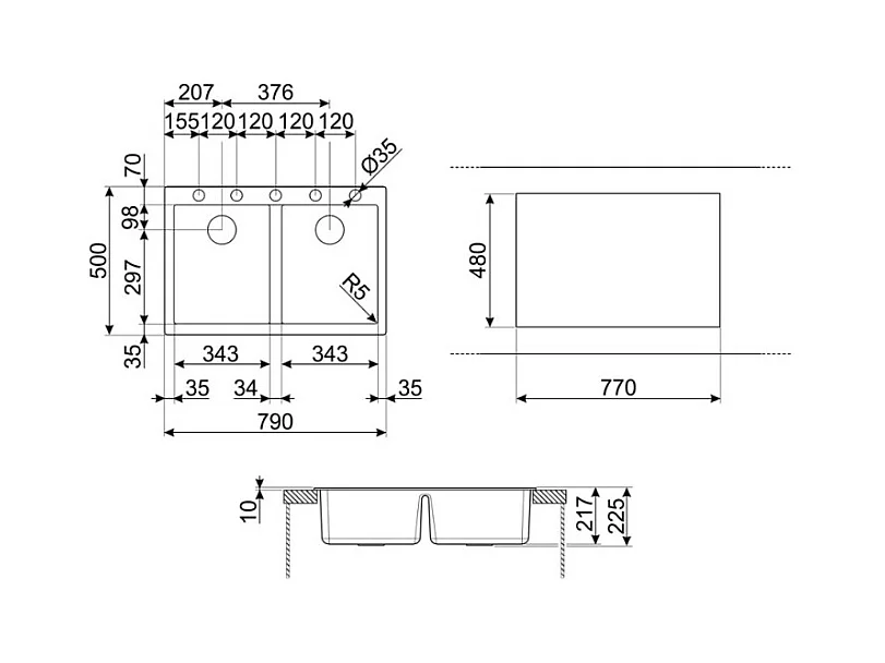 Lavello incasso 2 vasche 79x50 Smeg VZ3434P panna