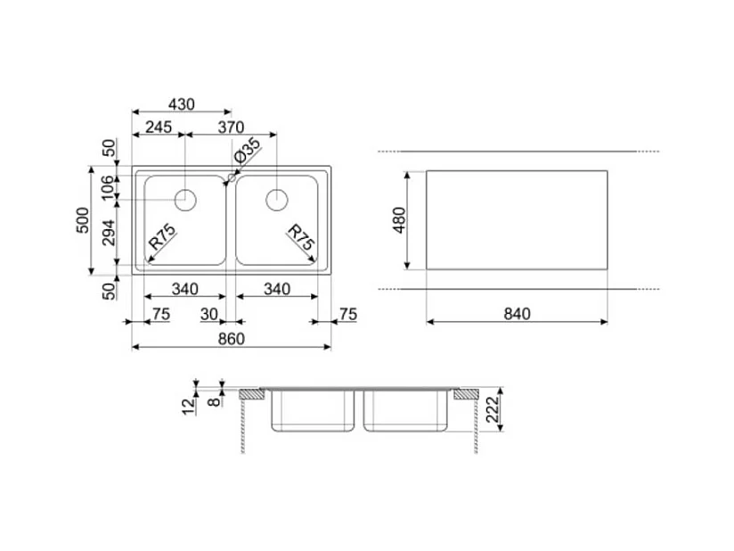 Lavello incasso 2 vasche 86x50 Smeg LP8622 inox spazzolato