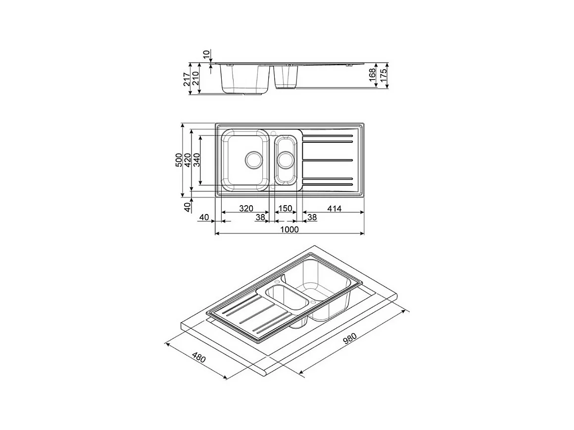 Lavello incasso 2 vasche e gocciolatoio reversibile 100x50 Smeg LS102T titanio