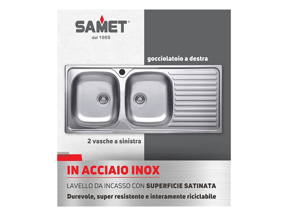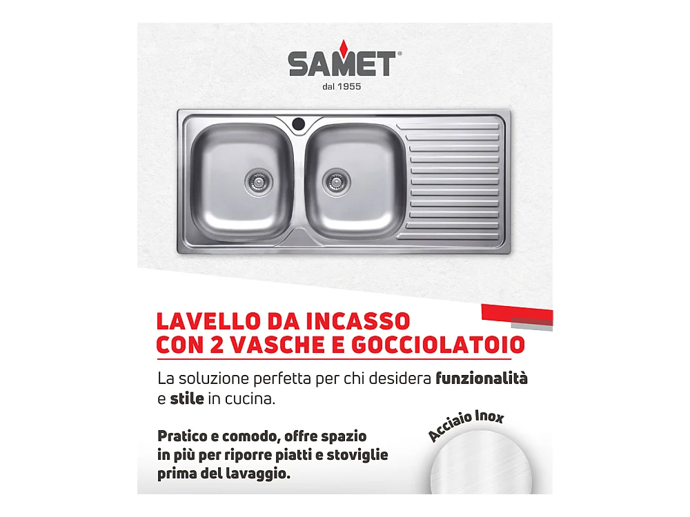 Lavello incasso acciaio inox 116x50 cm doppia vasca e gocciolatoio sinistro SA138
