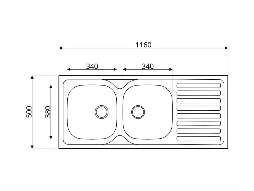 Lavello incasso acciaio inox 116x50 cm doppia vasca e gocciolatoio destro SA138