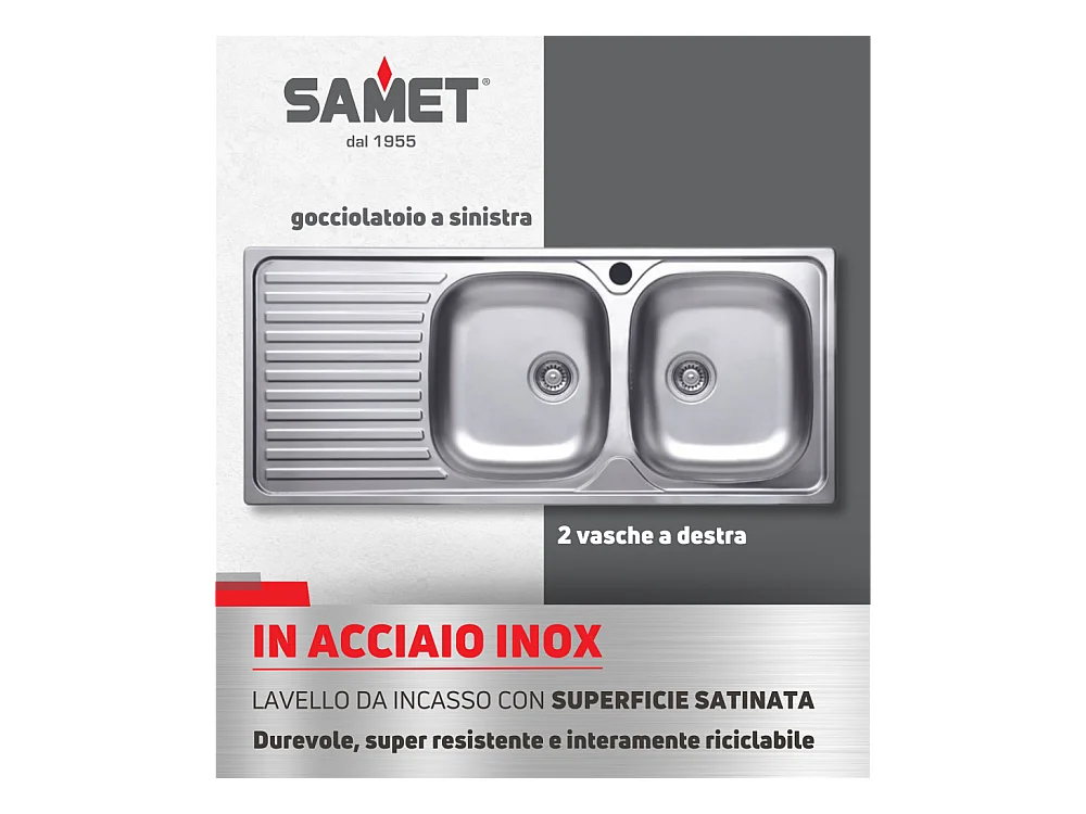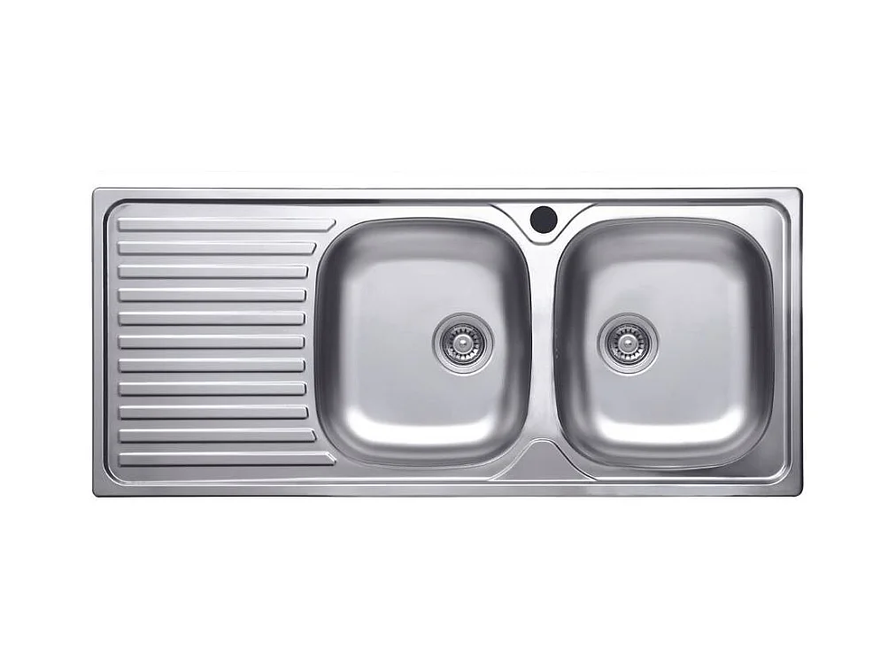 Lavello incasso acciaio inox 116x50 cm doppia vasca e gocciolatoio sinistro SA138