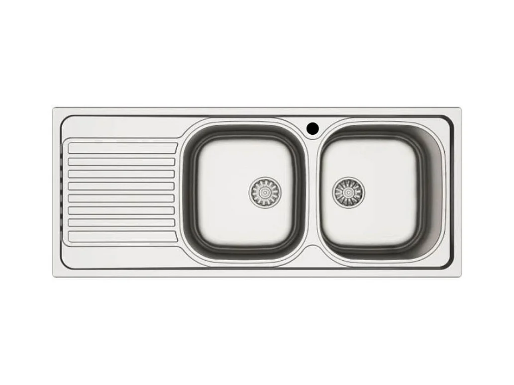 Lavello incasso cucina acciaio 116x50 cm due vasche e gocciolatoio destro MP1162DX