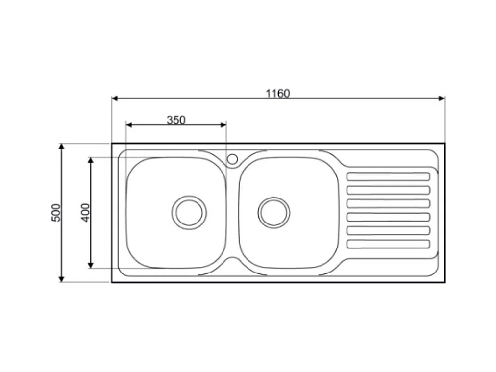 Lavello cucina acciaio 116x50 cm doppia vasca e gocciolatoio sinistro SAXT333A